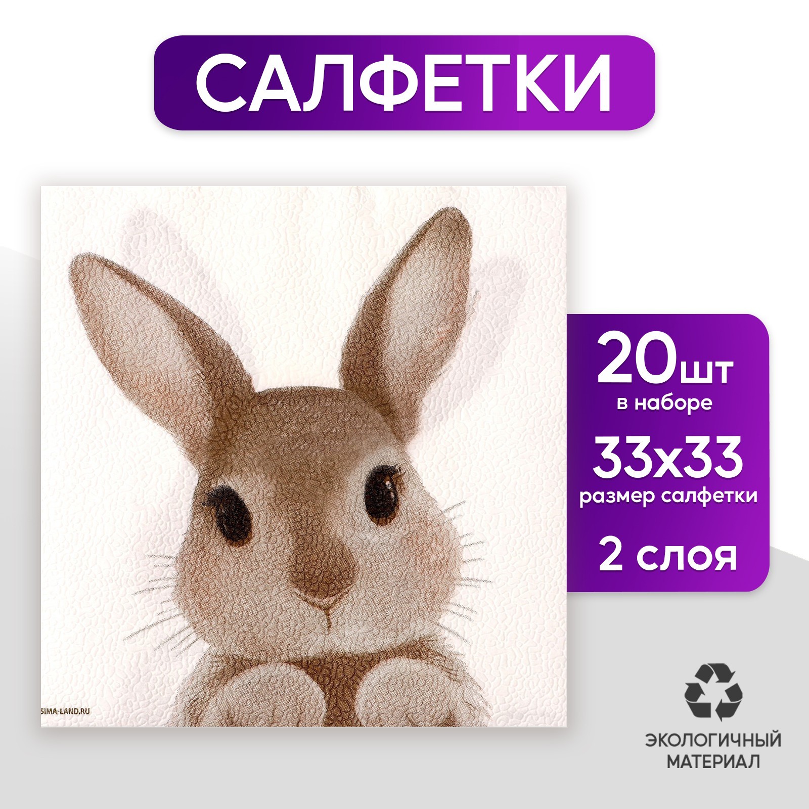 Салфетки бумажные однослойные «кролик», 33 х 33 см, набор 20 штук