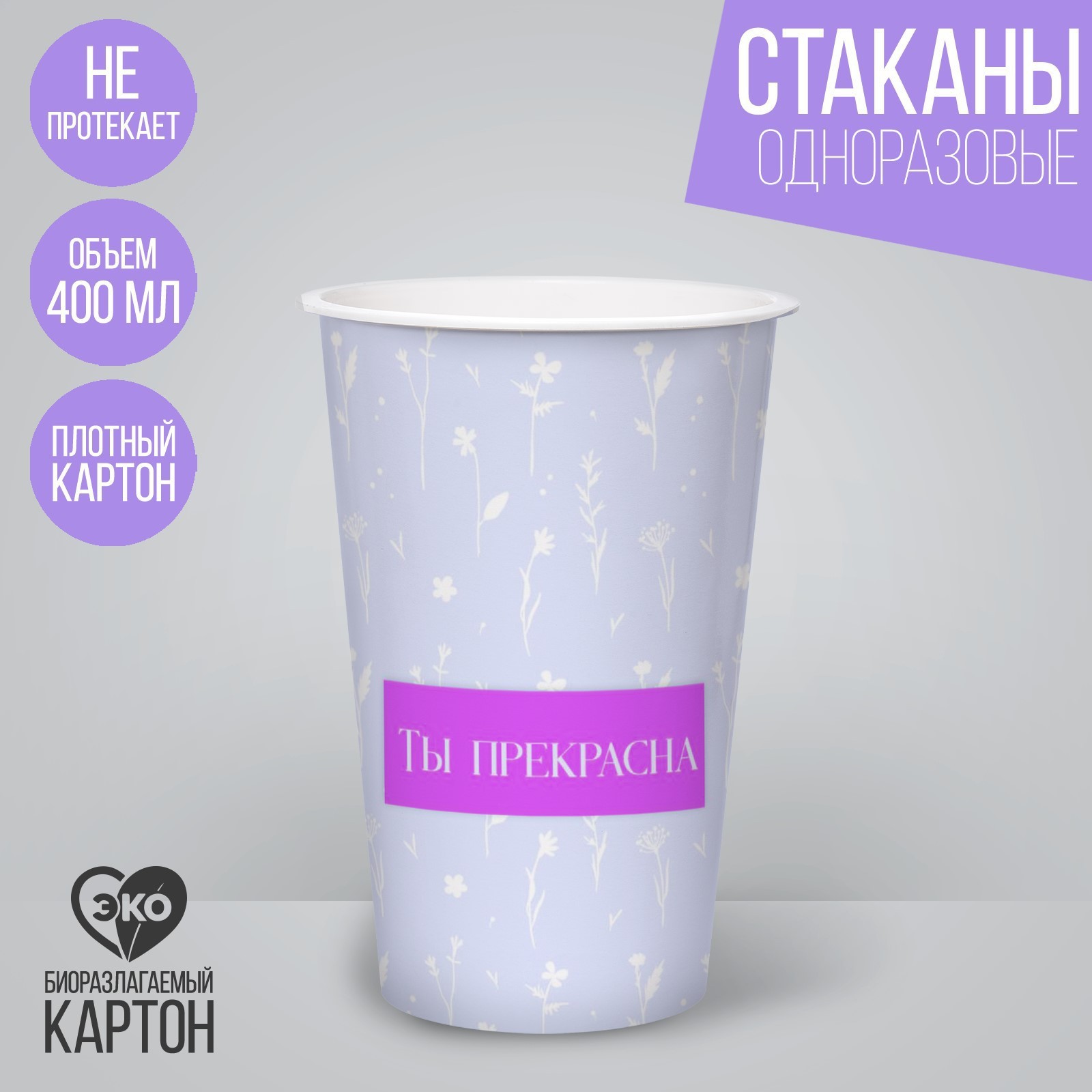 Стакан одноразовый бумажный для кофе "ты прекрасна", 400 мл