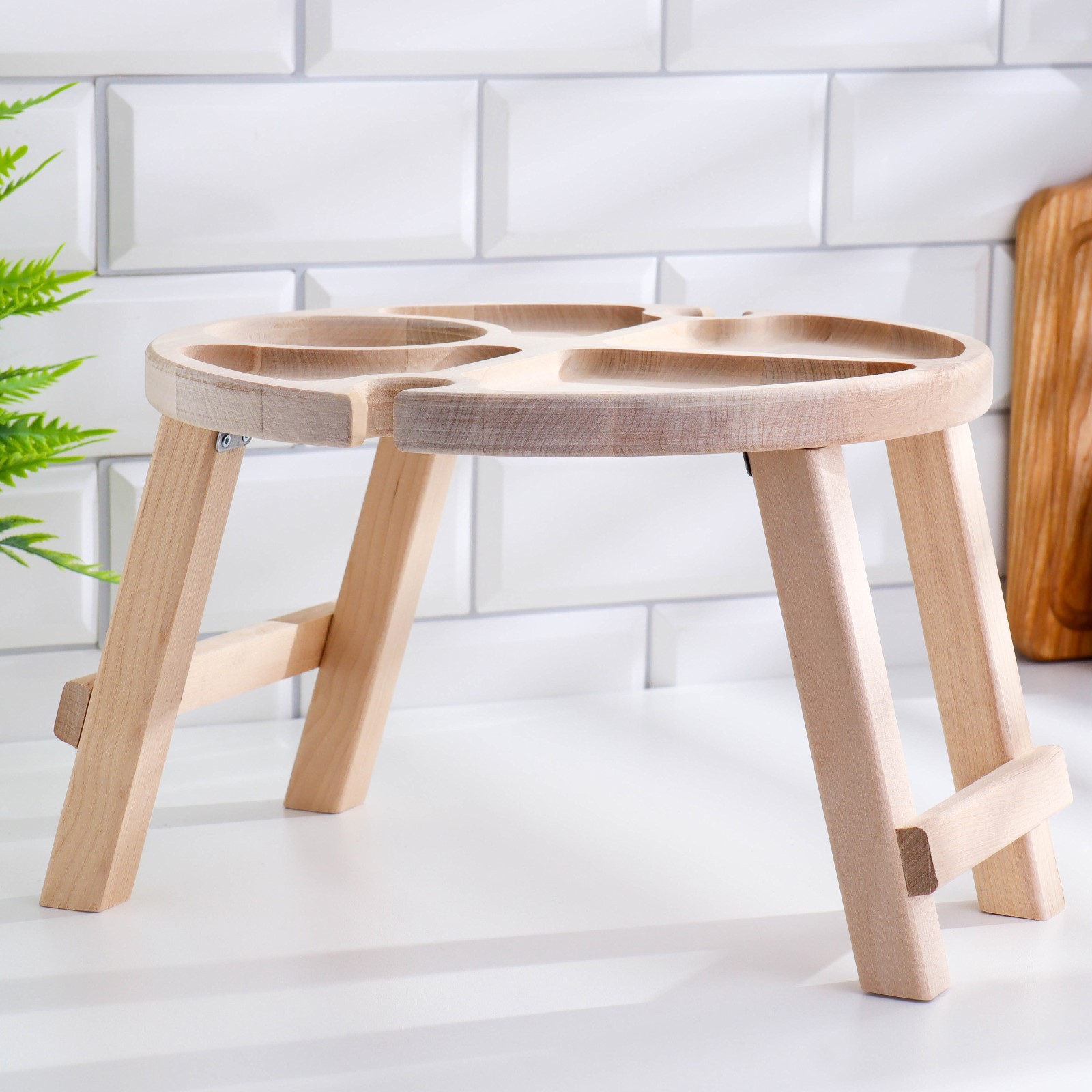 Столик - поднос с менажницей и складными ножками D=30x2 см, береза