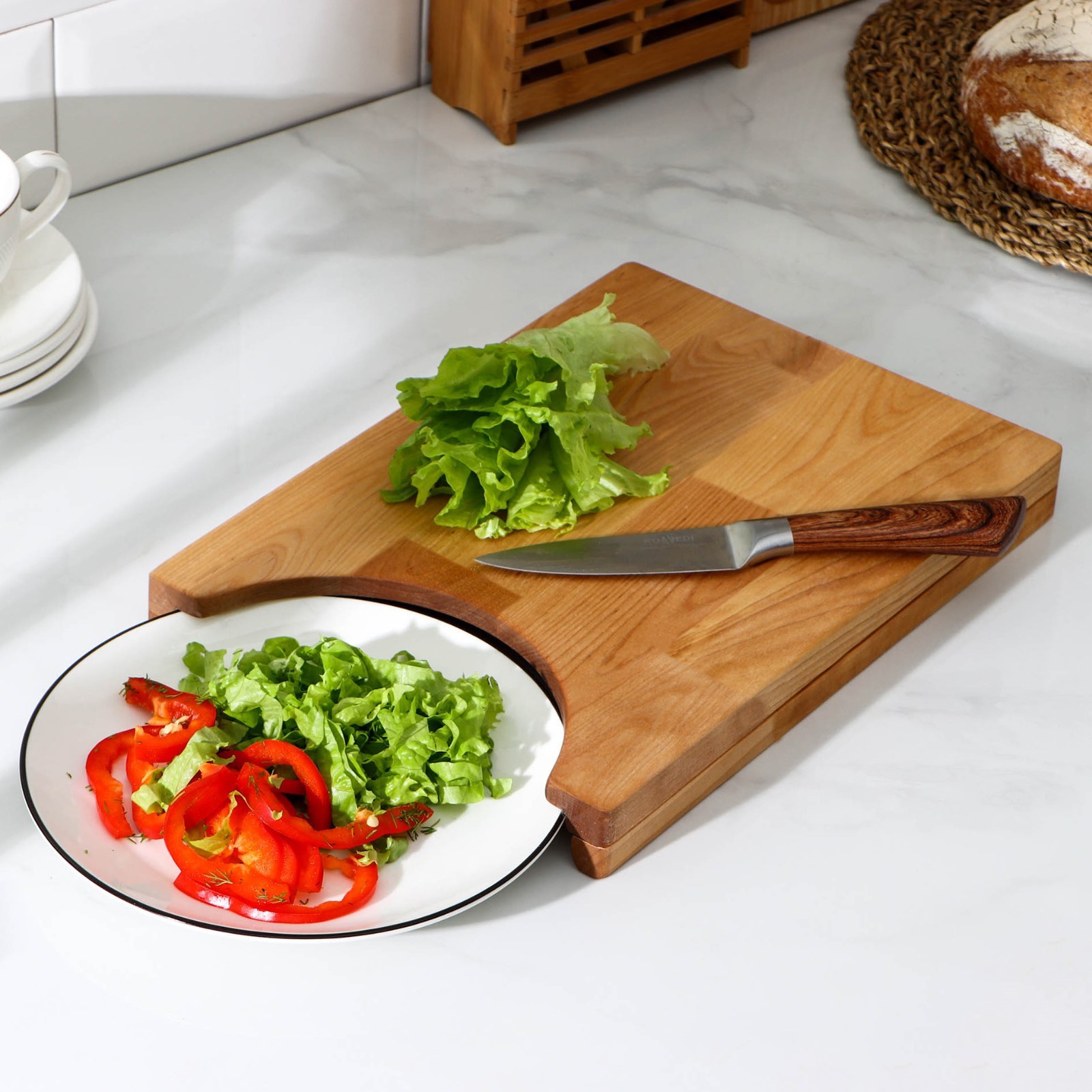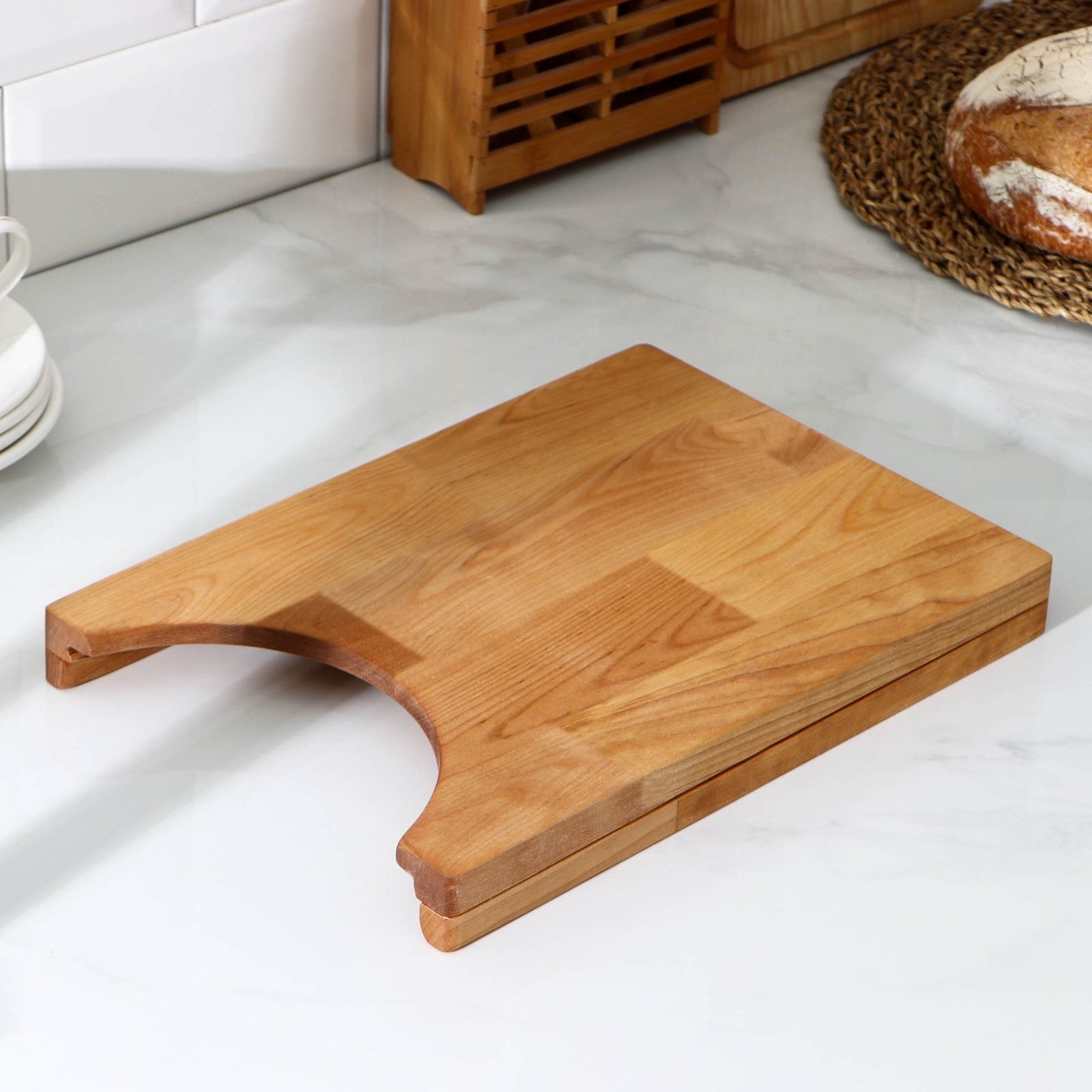 Доска разделочная с отделением под тарелку, 31x22x3,8 см, берёза