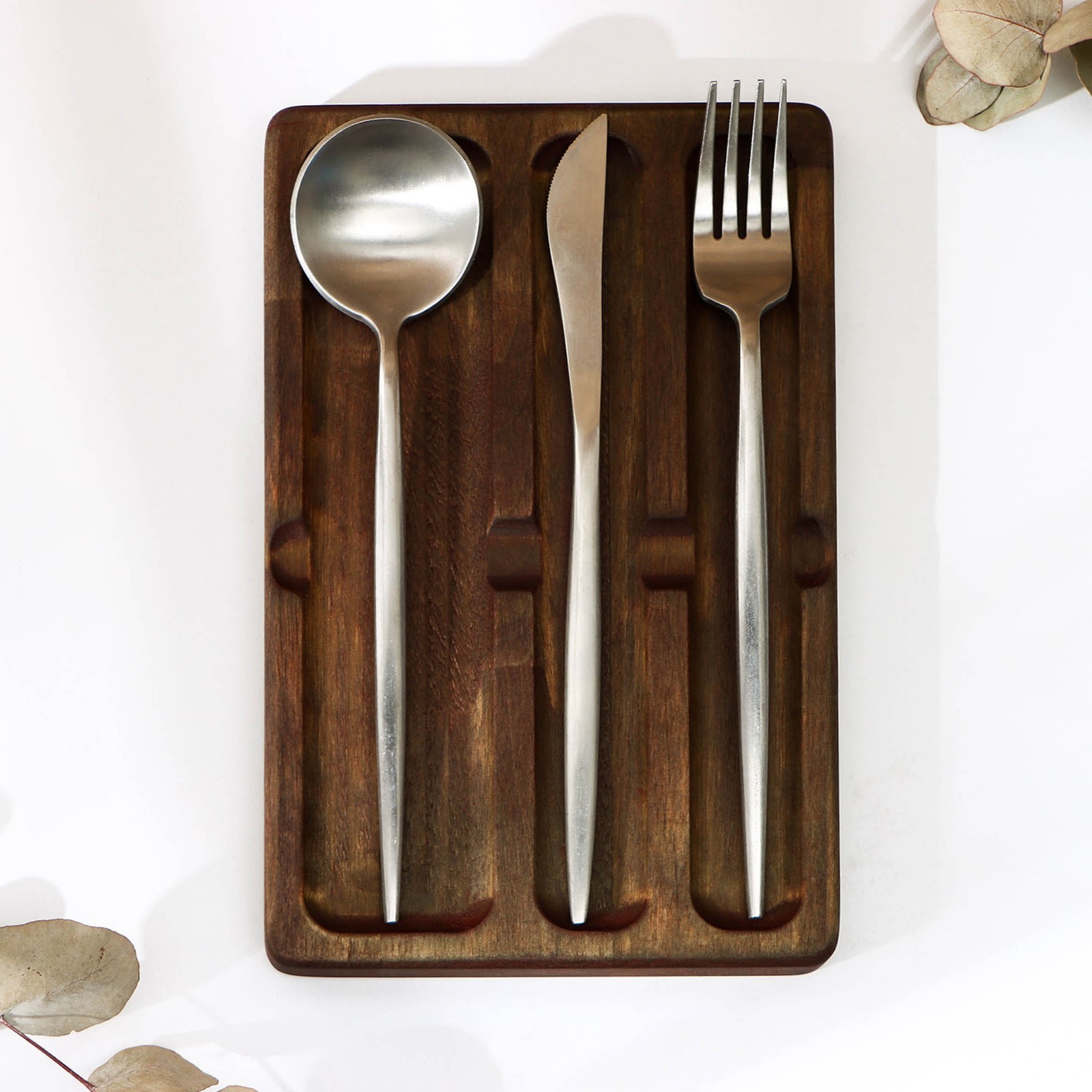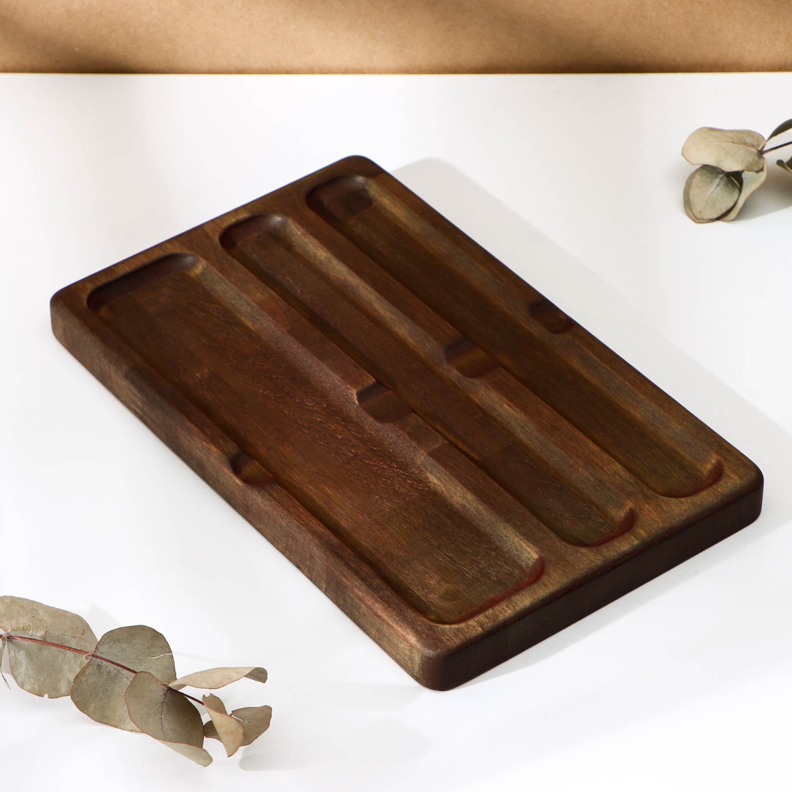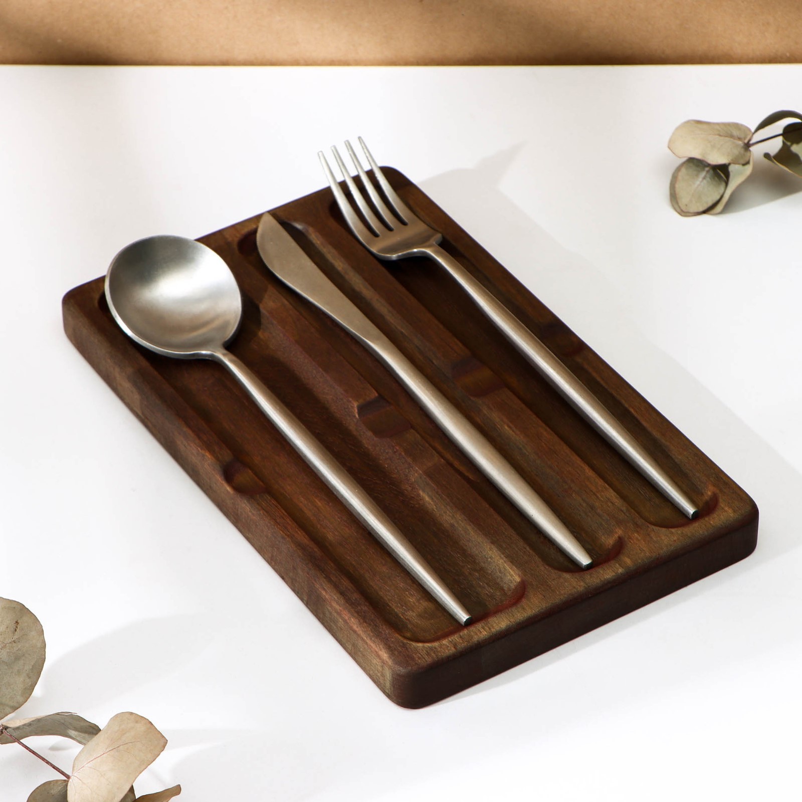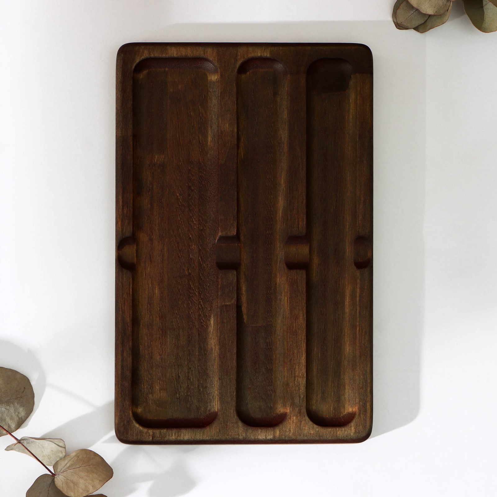 Подставка для столовых приборов Adelica, 3 секции, 24x15x1,8 см, окрашен в тёмный цвет, берёза