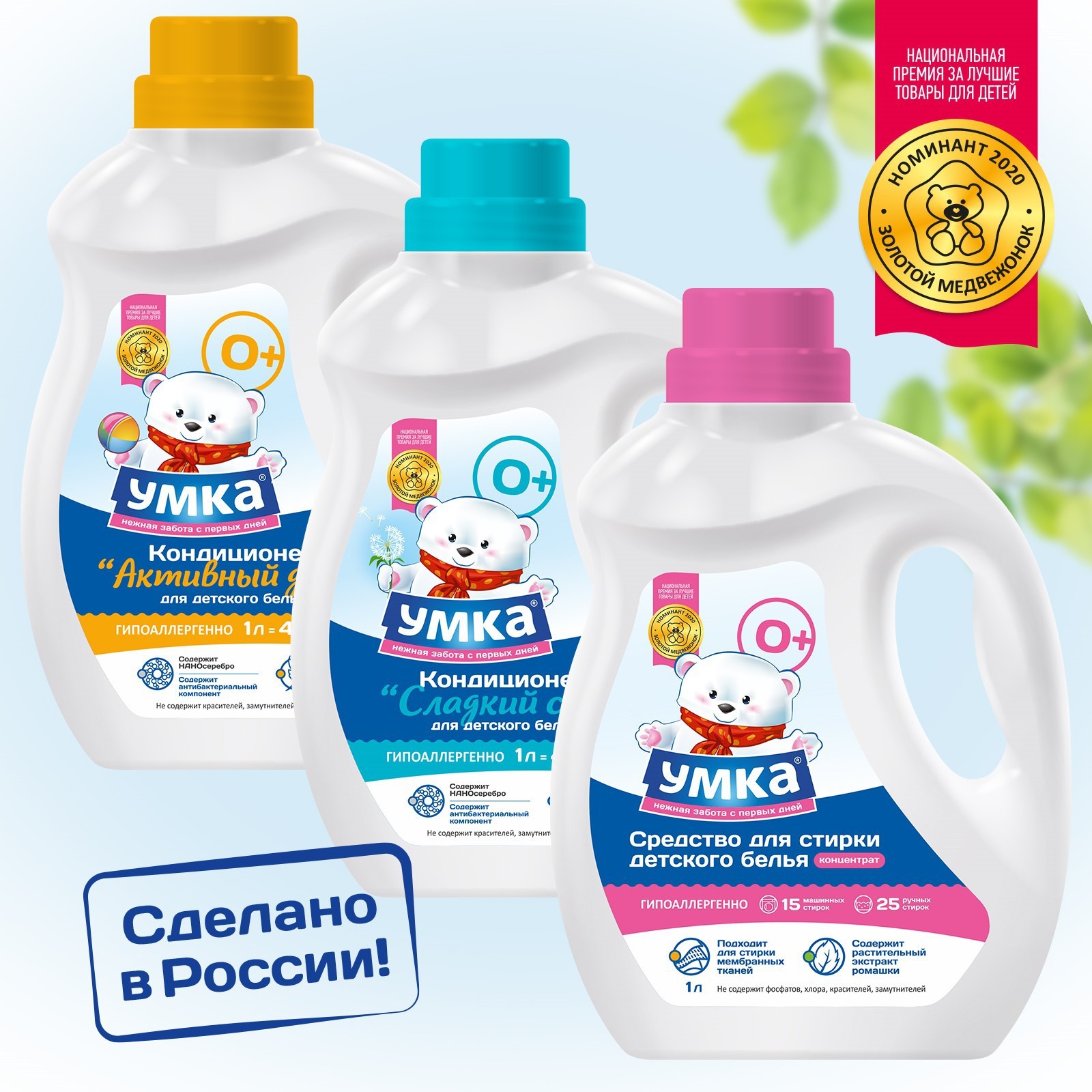 Жидкое средство для стирки "умка", гель, для стирки детского белья, 1 л
