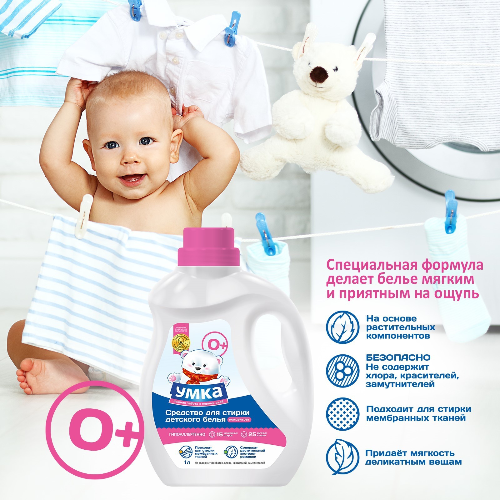 Гель для стирки детского белья «Умка» предназначен для стирки детских вещей ребёнка с первых дней жизни.
