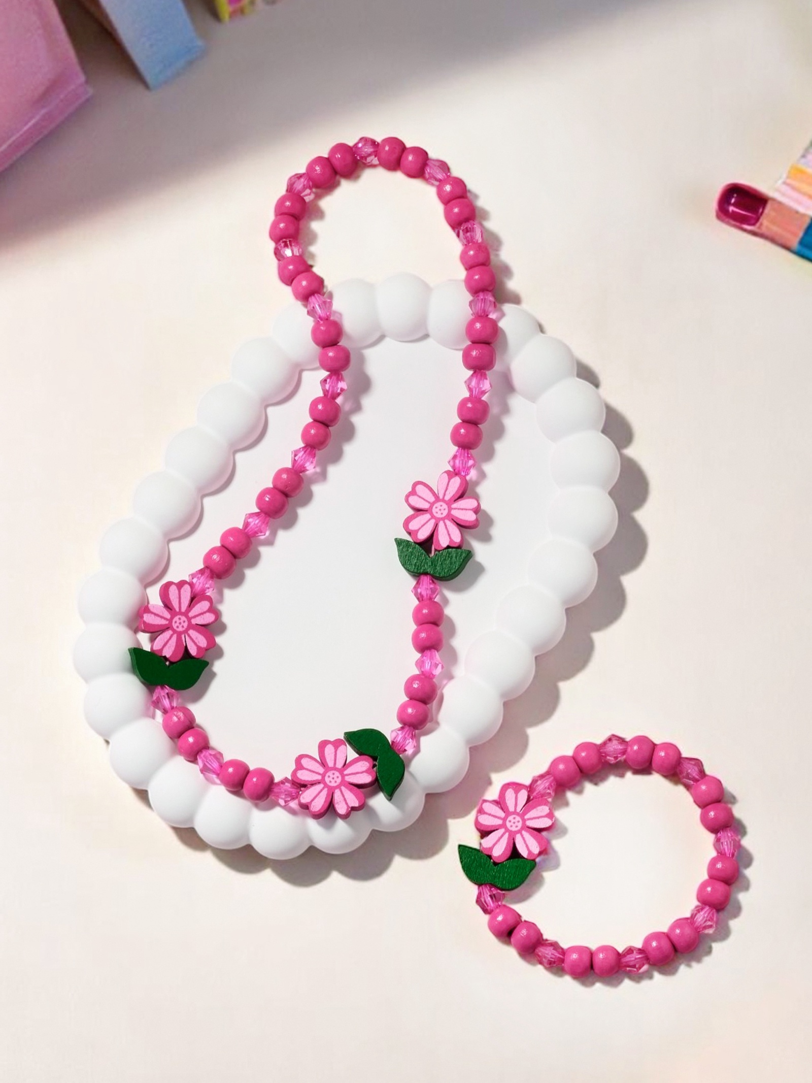 Набор детских украшений выбражулька «крупные цветы», 2 предмета: бусы, браслет, розовый