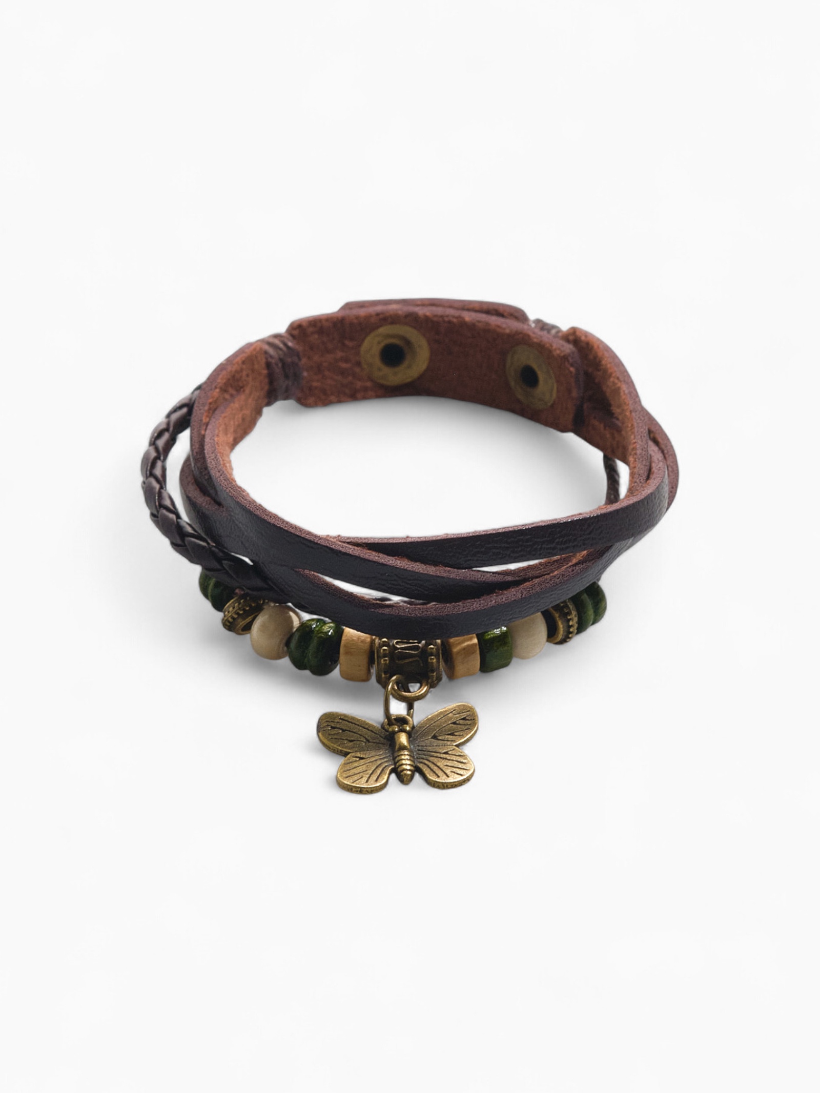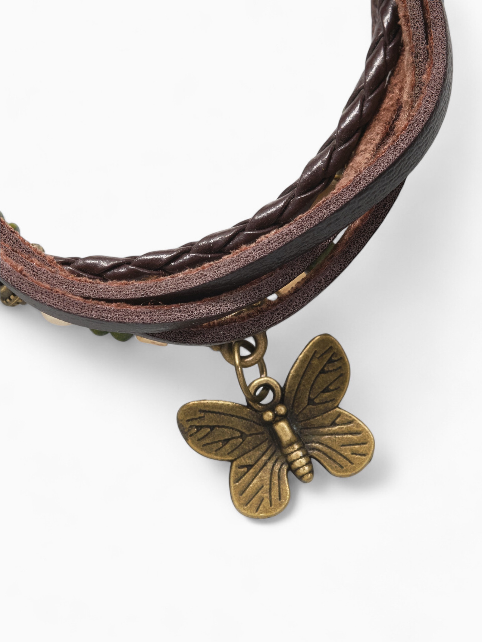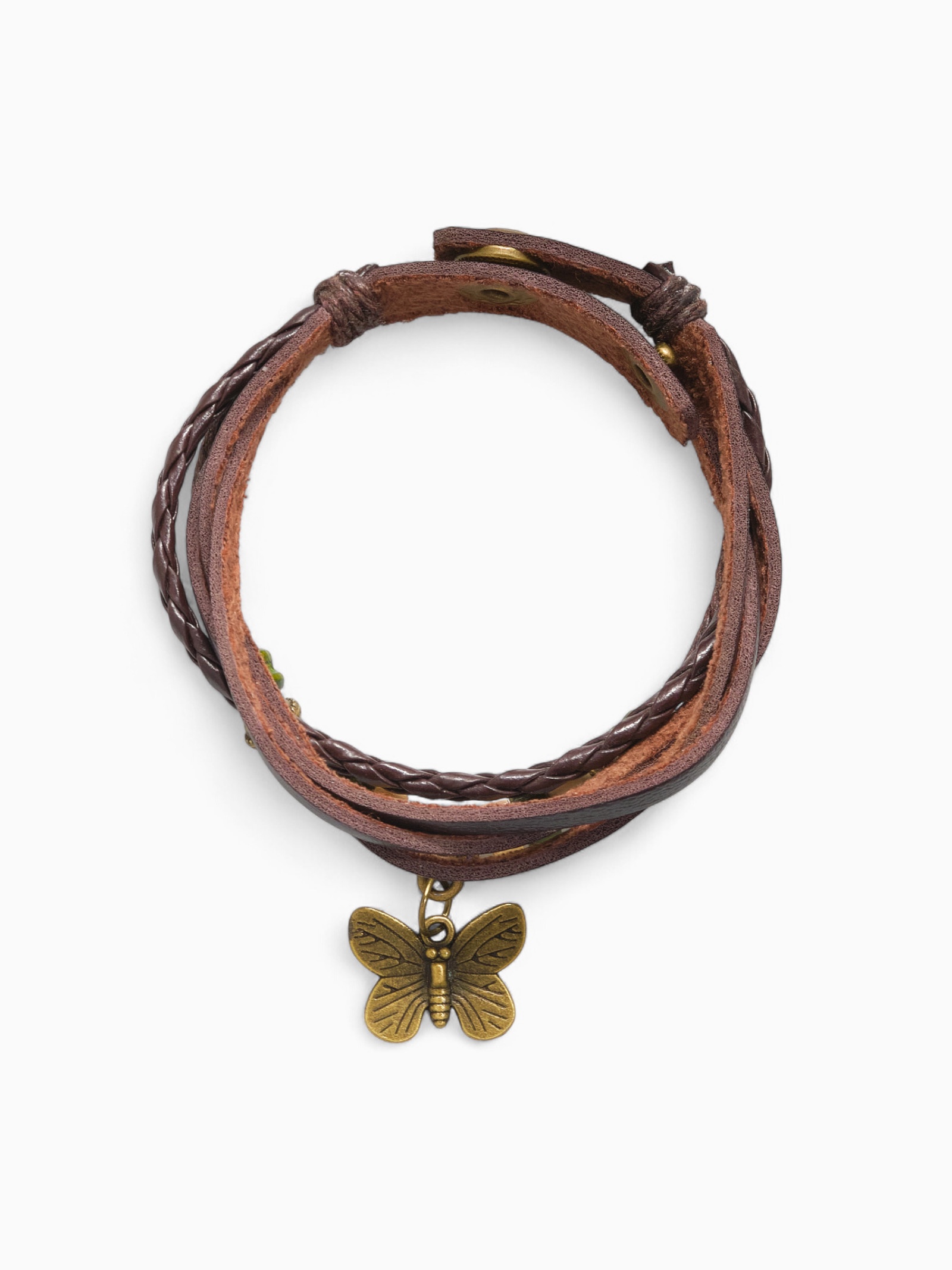 Браслет кожа «бабочка малая» хиппи, цвет коричневый, L=22,5 см
