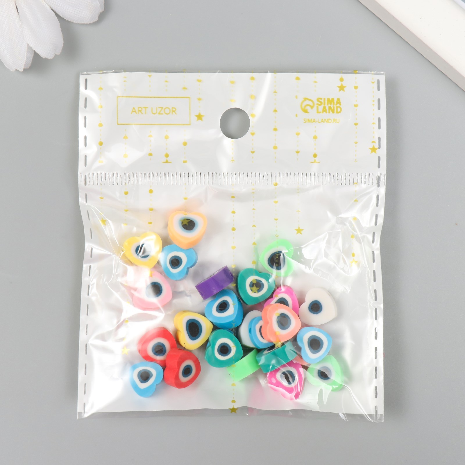 Набор бусин для рукоделия и плетения «арт узор. сердечки от сглаза», 25 шт., цветные, Pvc, 0.5 1 1.1 см