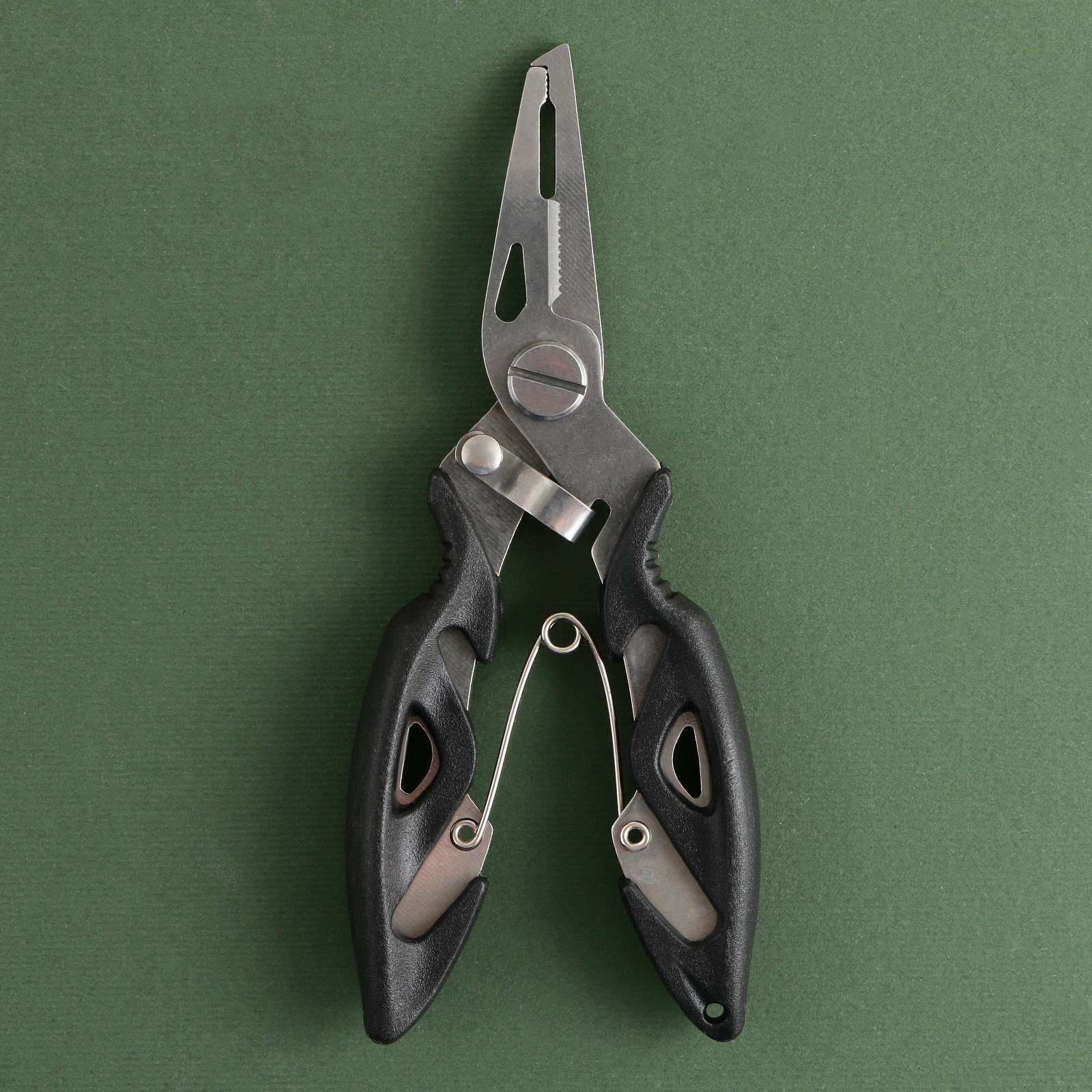 Плоскогубцы для рыбалки «крутой рыбак», 12,5 х 5 см. Плоскогубцы для рыбалки «Крутой рыбак», 12, 5 х 5 см Плоскогубцы рыбака предназначены для обрезания плетеного шнура, монопольной и флюорокарбоновой лески. Так же можно отрезать стальные и титановые поводки. Затягивать рыболовные узлы, загибать разогнувшиеся офсетники, двойники и тройники. На рыбалке удобны при монтаже оснасток или вязании поводков. Так же удобно вынимать приманки из пойманной рыбы. Рыболовные плоскогубцы, позволят вам зажимать грузила и разгибать заводные кольца для блесен, воблеров и джиг головок, зажимать обжимные трубочки для стальных и флюорокарбоновых поводков. Этот мультитул имеет удобную рукоятку и механизм фиксации. Также, благодаря подарочной упаковке, их можно преподнести в качестве дополнения к подарку настоящему рыбаку! Цвет: Чёрный Материал: Пластик Материал: Металл Вид: Плоскогубцы  развернуть описание ▼