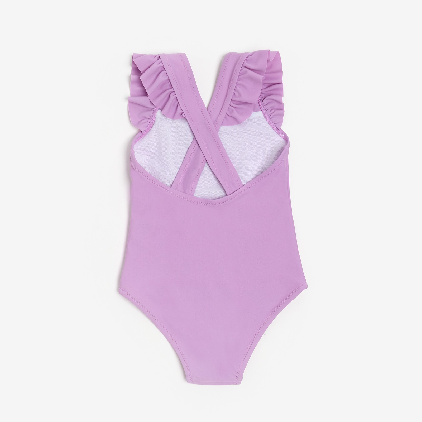 Купальник слитный детский minaku цвет сиреневый, рост 122-128. Вид: Купальник Цвет: Сиреневый Для кого: Для девочки Назначение: Пляж Рост, см: 122 Рост, см: 128 Сезон: Лето Тематика: Однотонная Тип купальника: Слитный Декоративные элементы: Рюши Комплектация: Купальник Рекомендации по уходу: Не отбеливать Рекомендации по уходу: Деликатная стирка при 30 °С Состав ткани: Эластан Состав ткани: Нейлон Обхват талии, см: 48 Длина изделия по спинке, см: 46.6 Обхват груди, см: 55.3 Обхват бёдер, см: 53.2 Рост, см: 122 - 128 Сезон: Лето  развернуть описание ▼