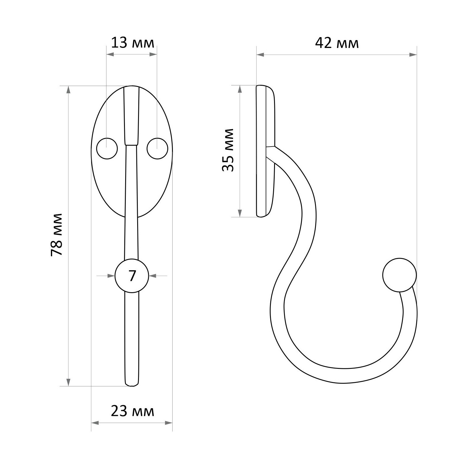 Крючок мебельный тундра Tko019, однорожковый, бронза