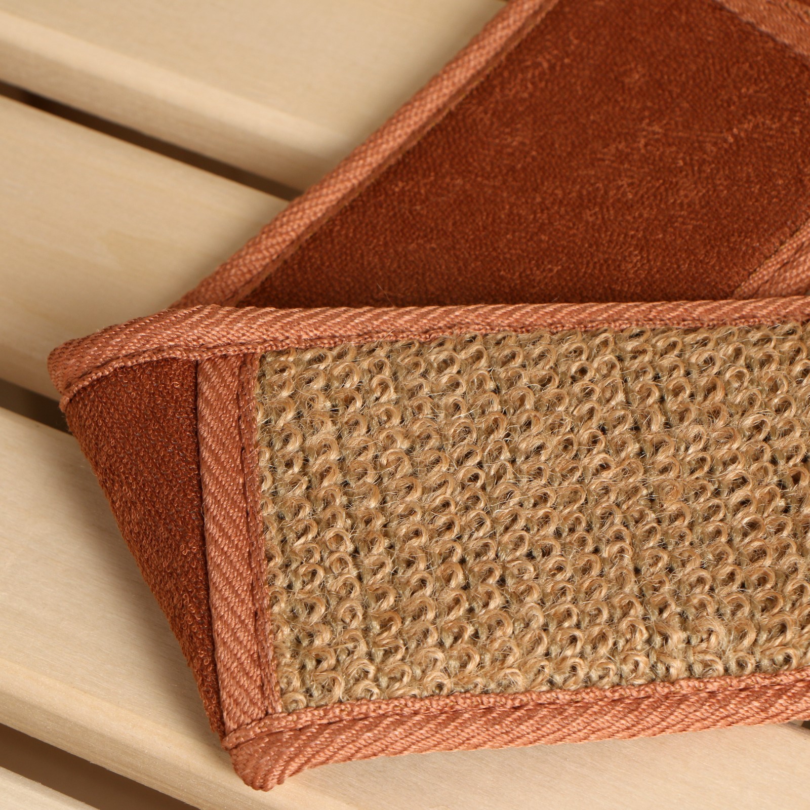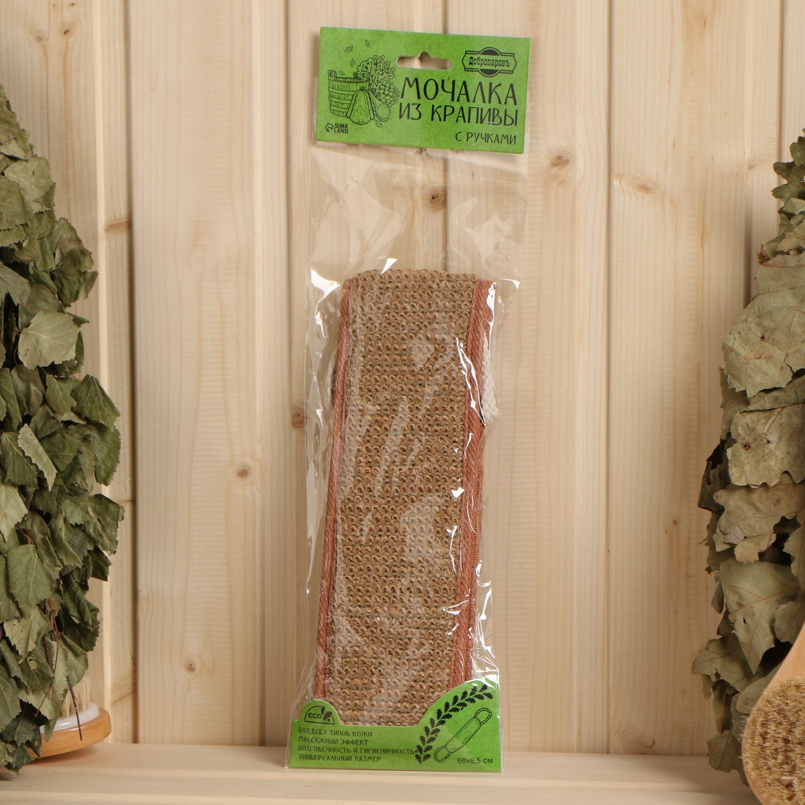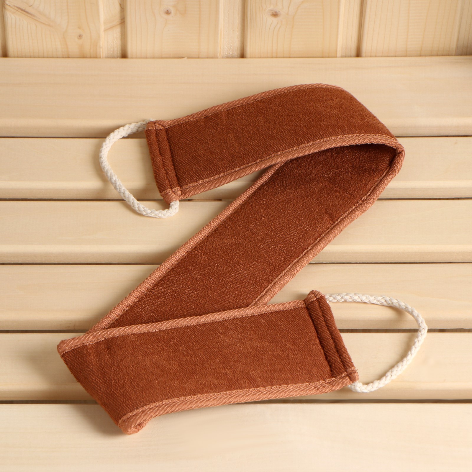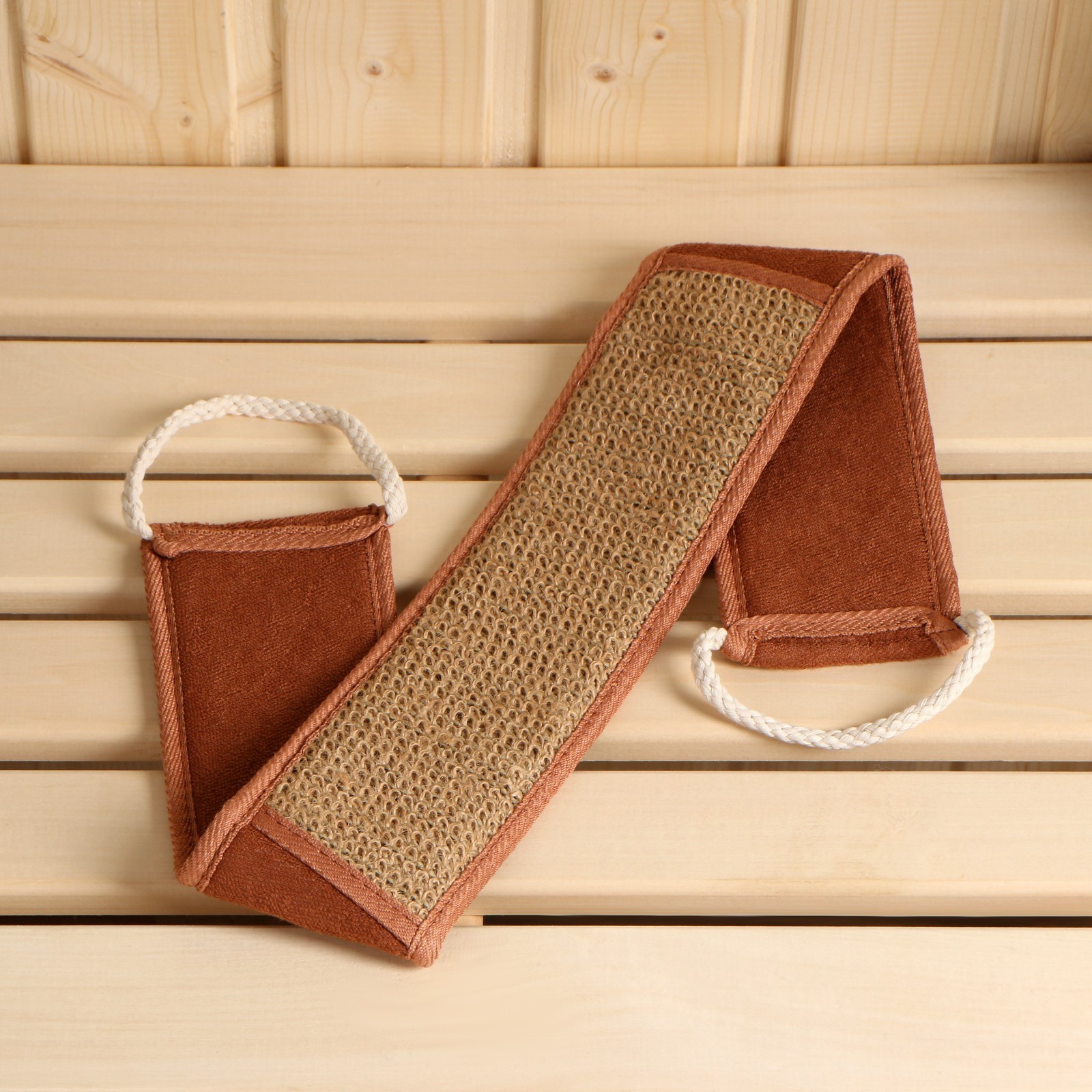 Мочалка из крапивы(рами), лента с сегментами хлопка с веревочными ручками, 66*8,5 см.
