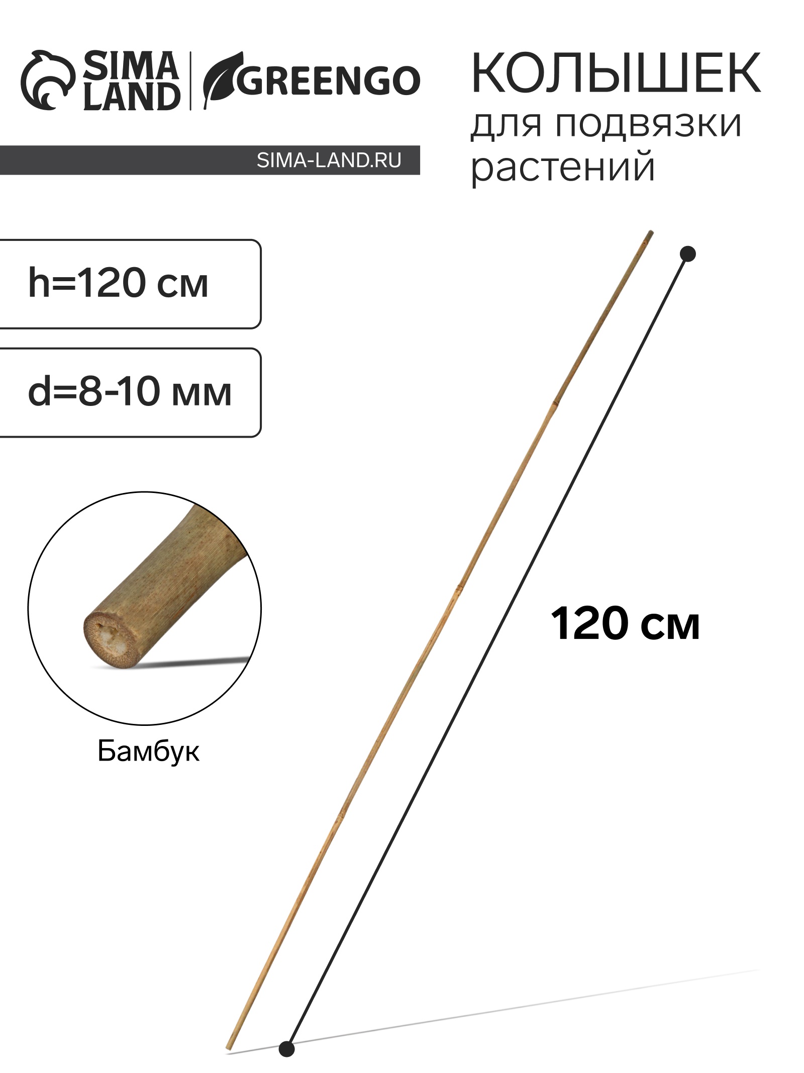 Колышек для подвязки растений, H=120 см, D=8-10 мм, бамбук, Greengo