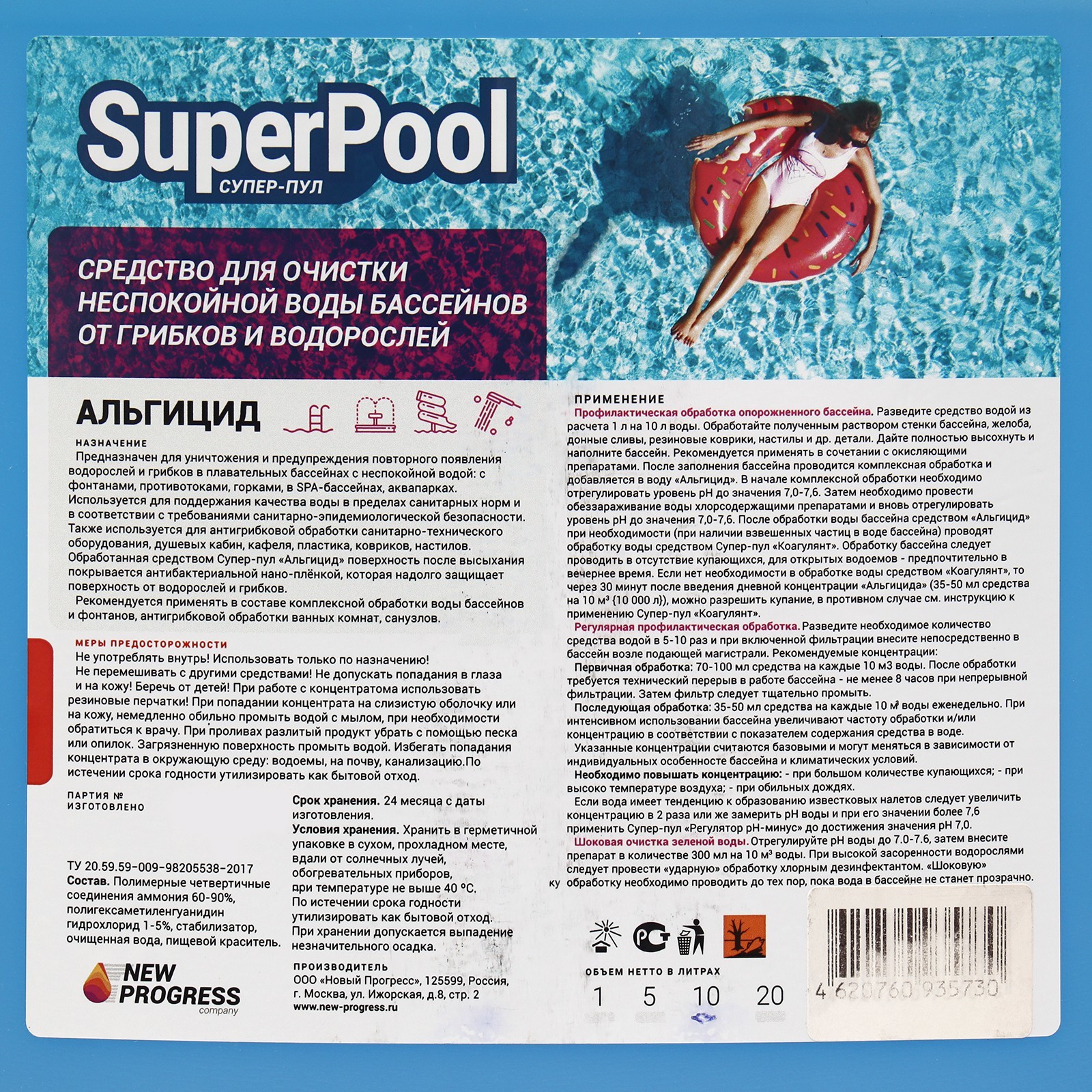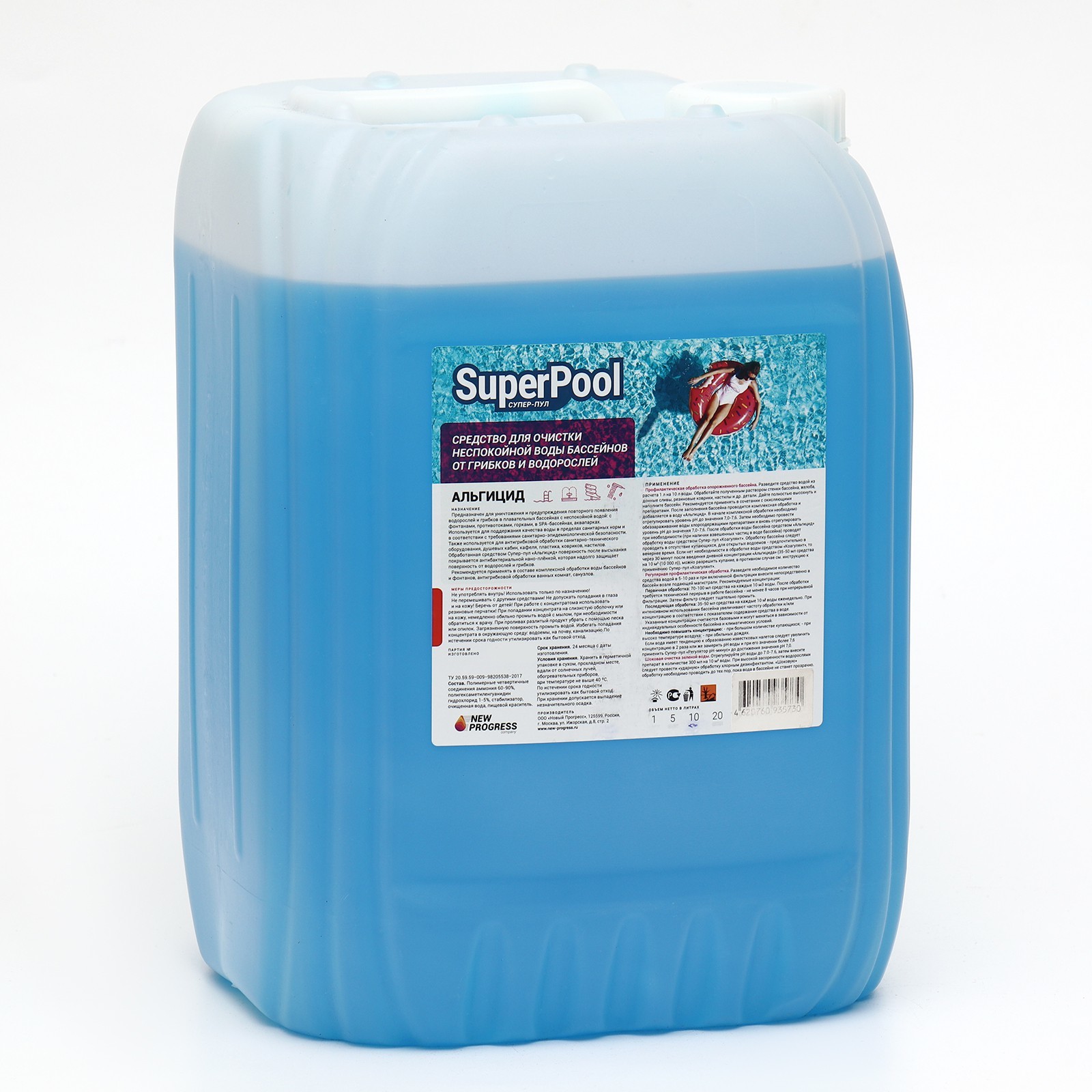Альгицид супер-пул, 10 л. parts count: 0 Вес, кг/Объём, л: 10 Вид средства: Прочие Форма выпуска: Жидкость Температурное ограничение: Нет  развернуть описание ▼
