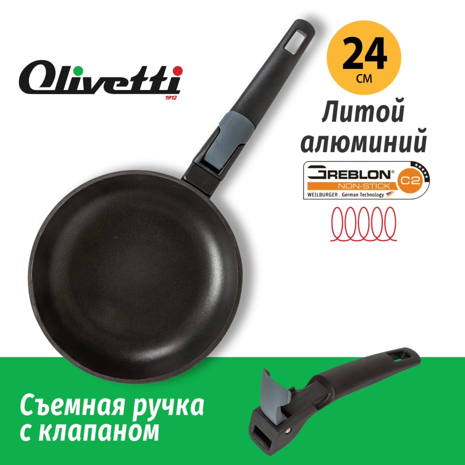 Сковорода Olivetti Fp524d, без крышки, антипригарное покрытие, индукция, D=24 см
