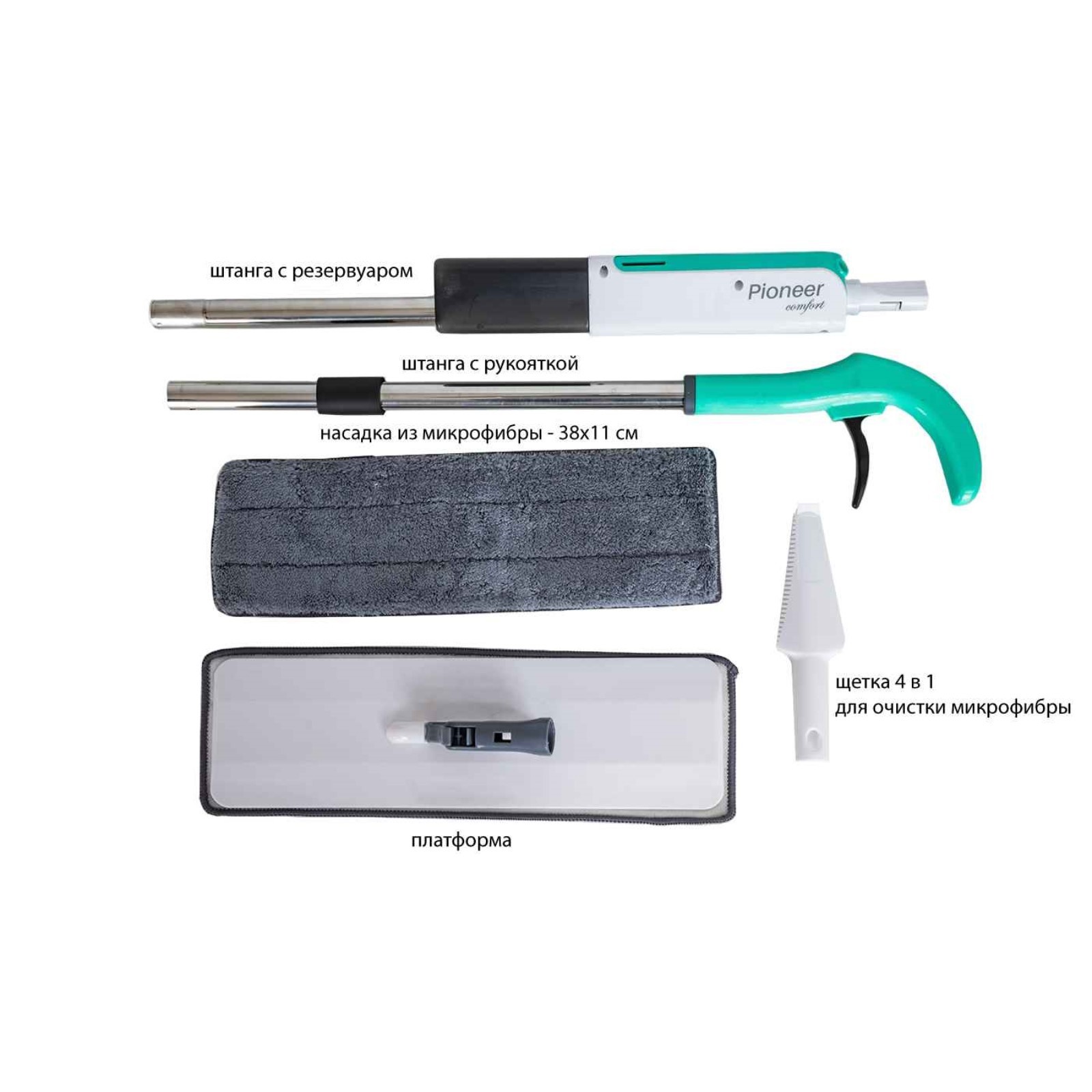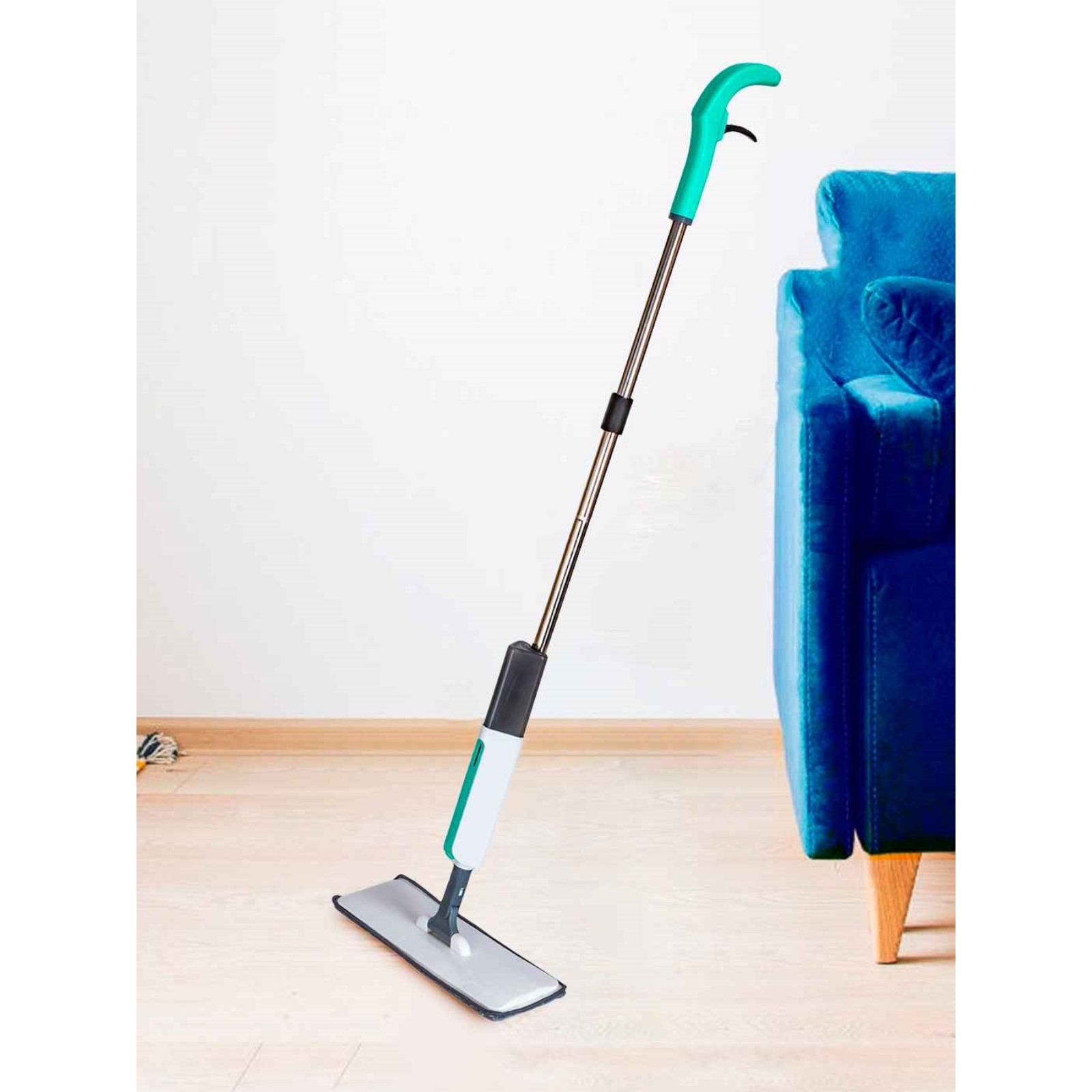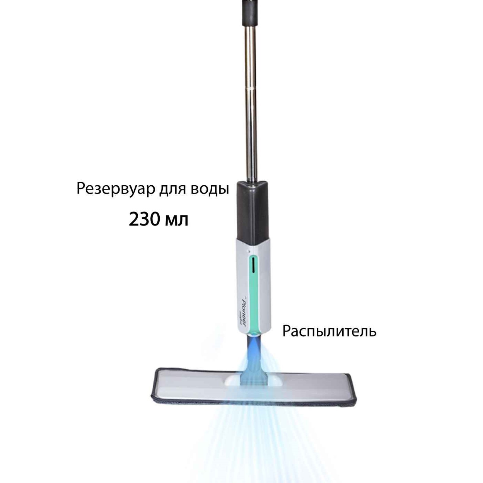 Швабра для мытья пола Pioneer Ms030, с распылителем, 230 мл, 122 см, цвет белый-бирюзовый