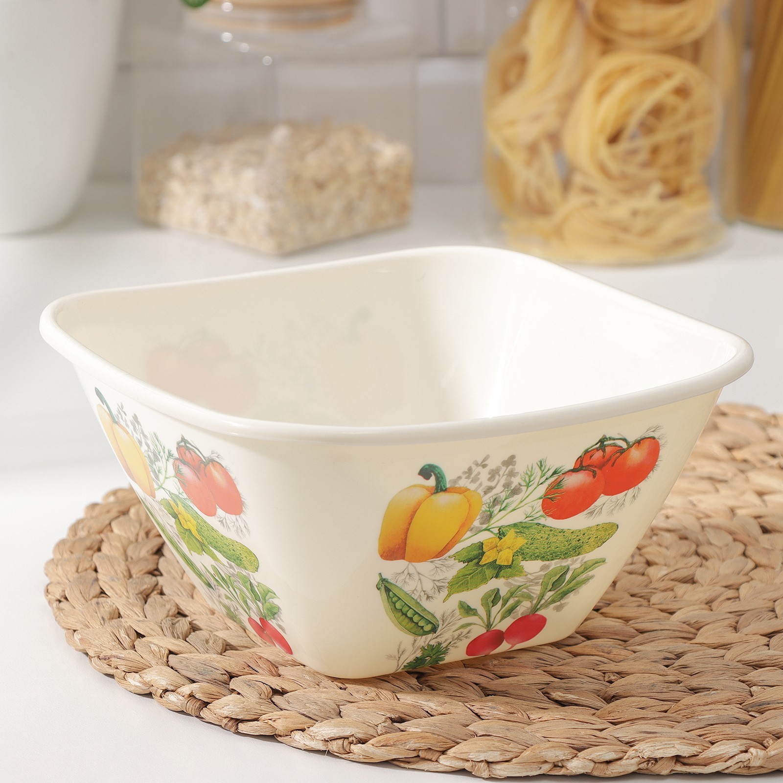 Миска пластиковая Bergamo, 2 л, 20,2x20,2x9,8 см, с декором, цвет светло-бежевый