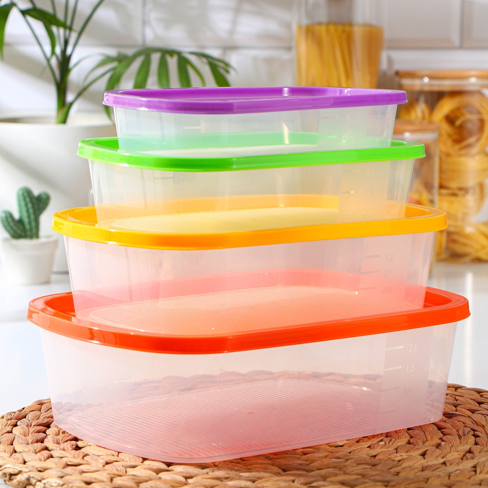 Набор пищевых контейнеров «biofresh», 4 шт: 500 мл, 1 л, 1,6 л, 2,3 л, цвет микс