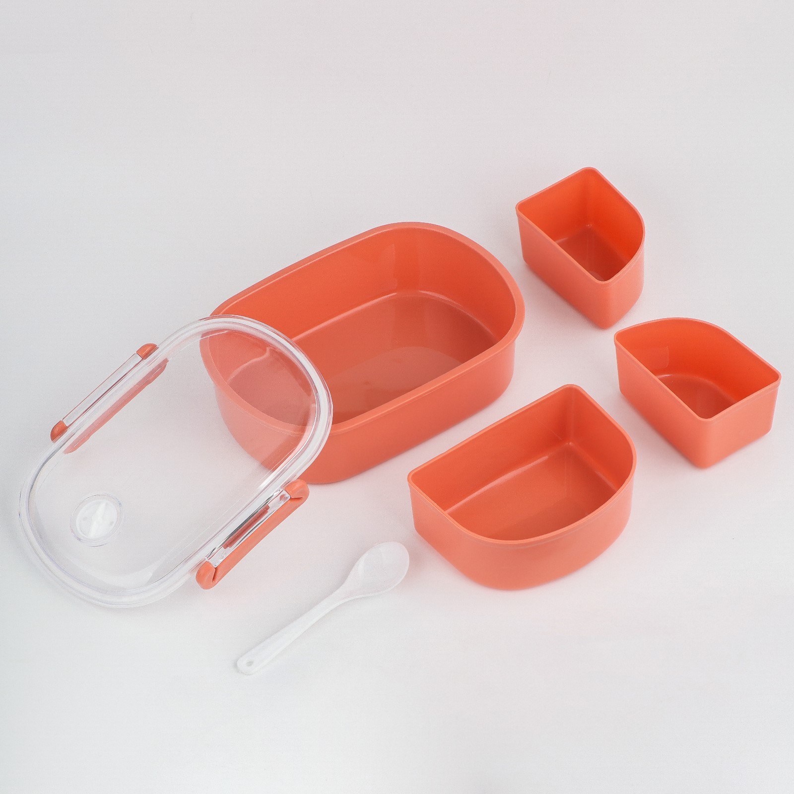 Ланч-бокс "эйлайт" , 640 мл, 18.5 х 14 х 6.3 см. Ланч-бокс со столовыми приборами предназначен для транспортировки еды с собой на работу, в офис, на учебу, отдых и в любые другие места. Для многоразового использования! Экологичный и безопасный материал, не содержит бисфенол А и фталаты, подходит для мытья в посудомойке, хранения в холодильнике, а также разогрева в СВЧ-печи. Не впитывает запахи. Цвет: Розовый Форма: Прямоугольная Объём, л: 0.64 В наборе, шт.: 2 Объём, мл: 640 Материал: Пластик Герметичная крышка: Да Можно использовать в СВЧ-печи: Да Форма: Прямоугольник  развернуть описание ▼