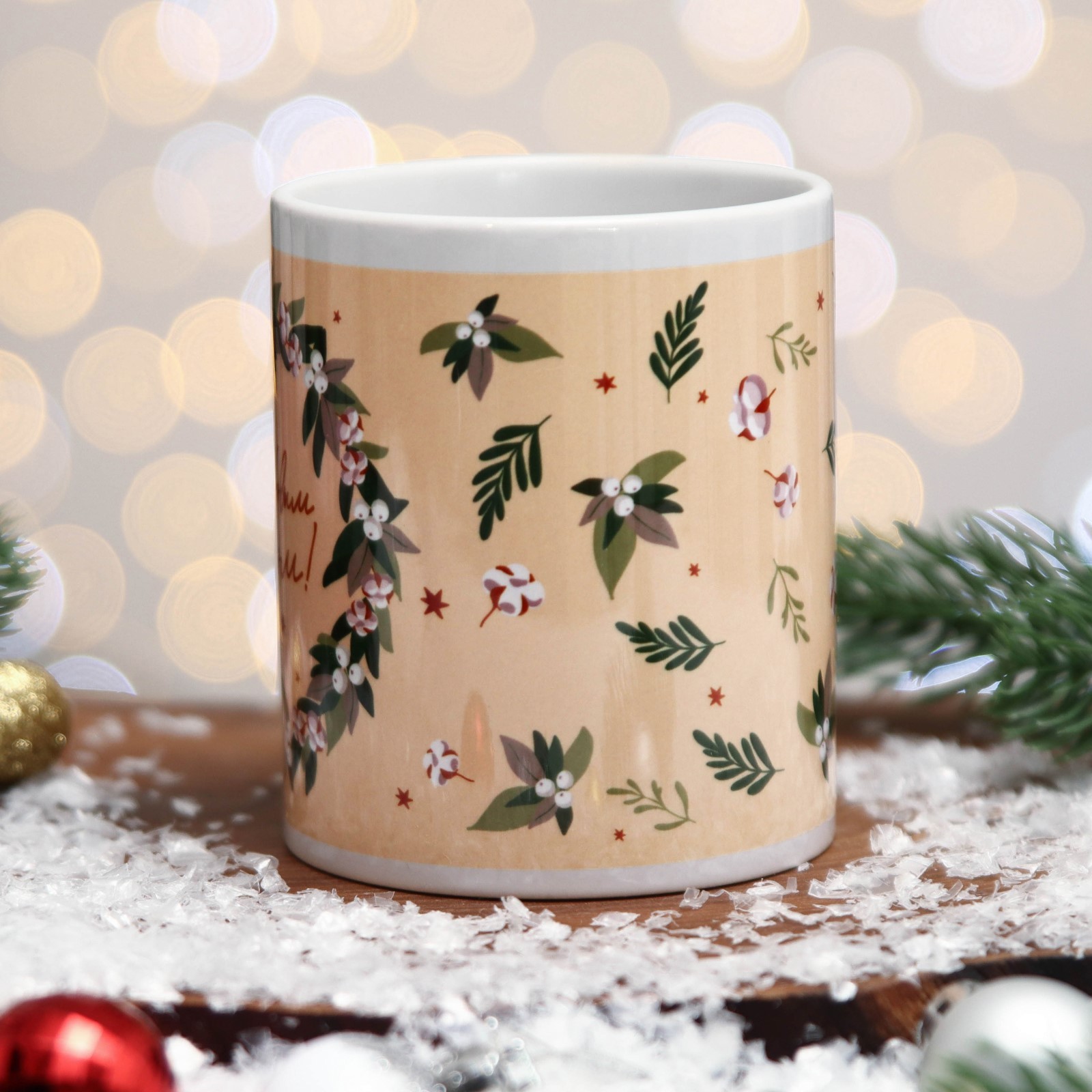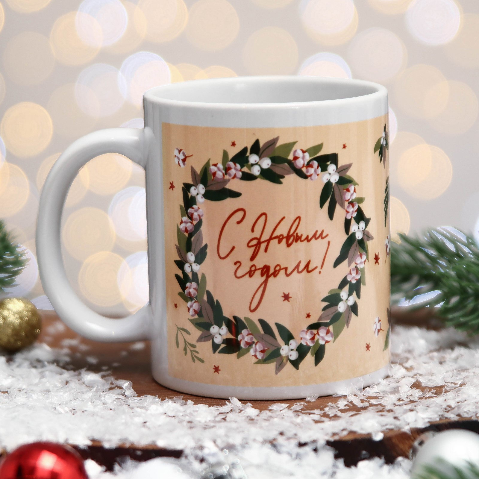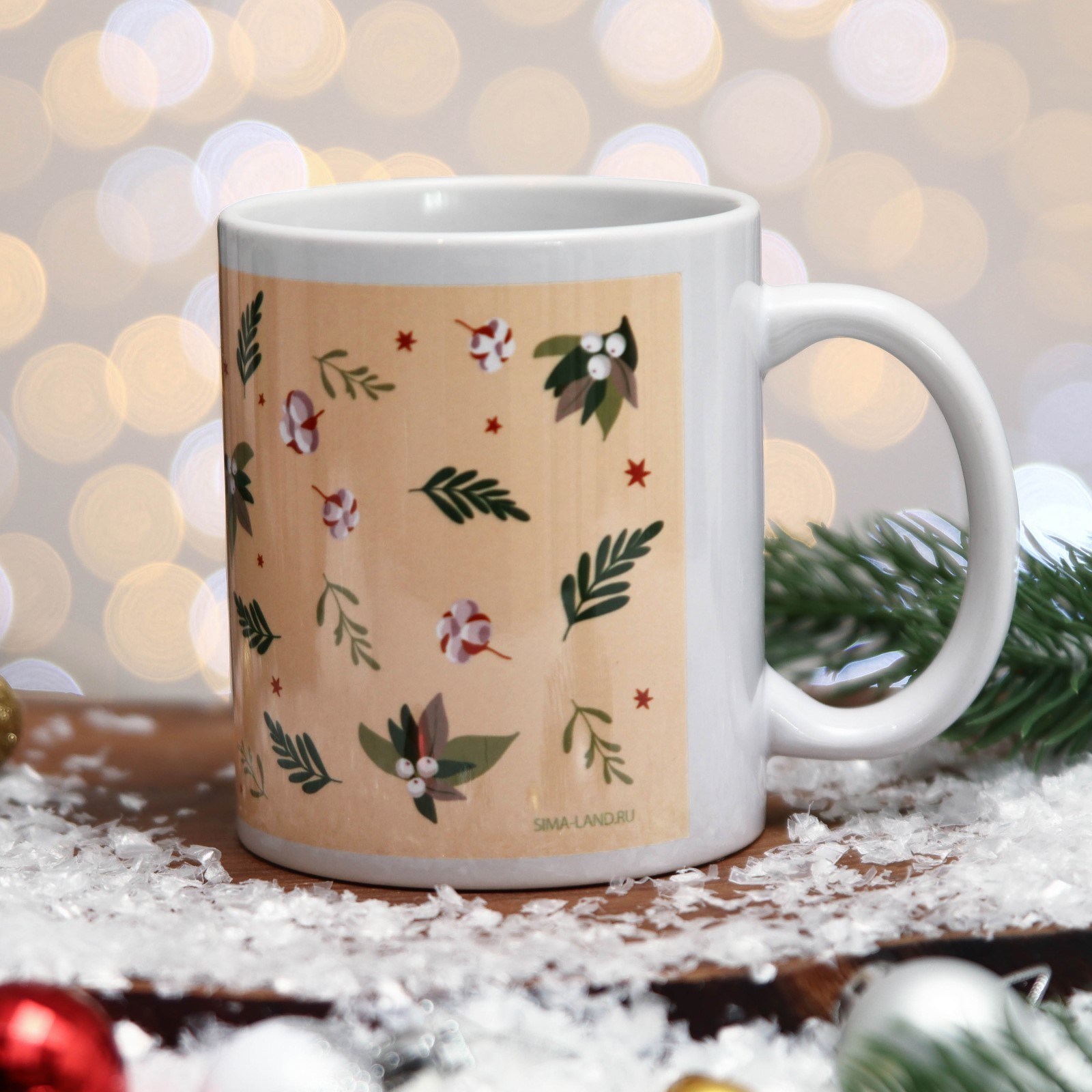 Кружка «с новым годом!» цветы, бежевый фон, 320 мл