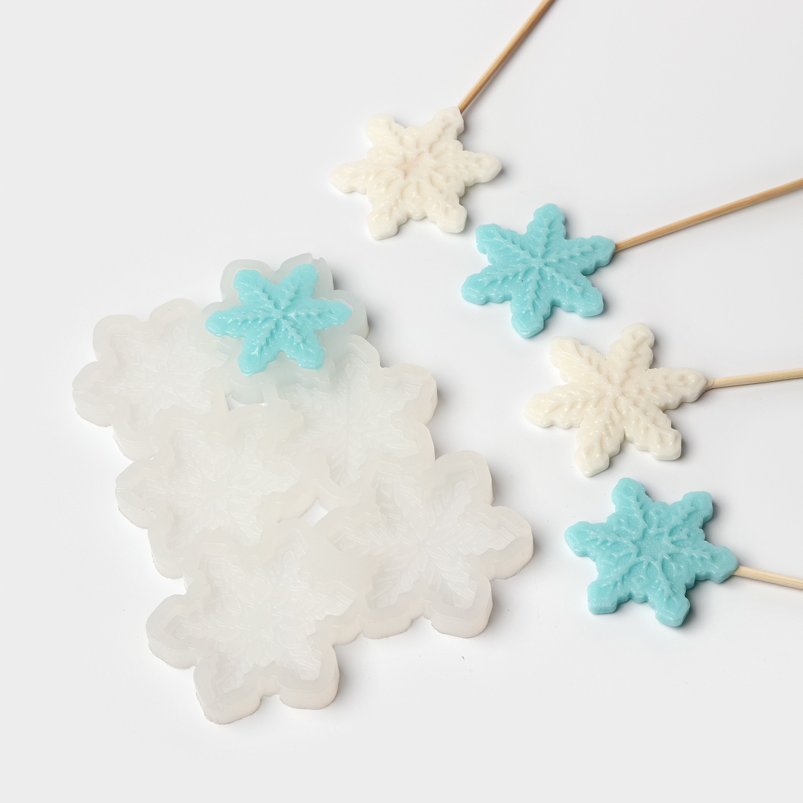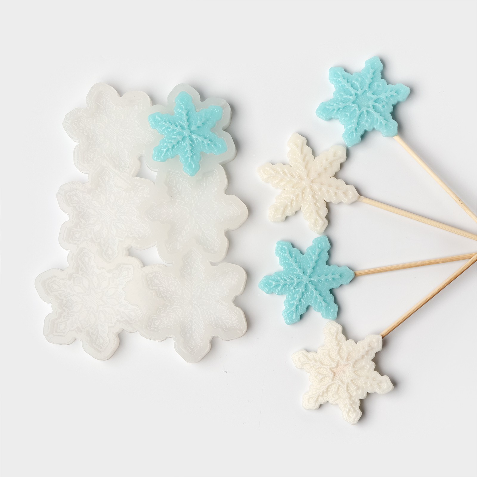 Силиконовый молд для леденцов и шоколада «снежинки», 17x10x0,8 см, D=5 см, D=4,5 см, цвет прозрачный