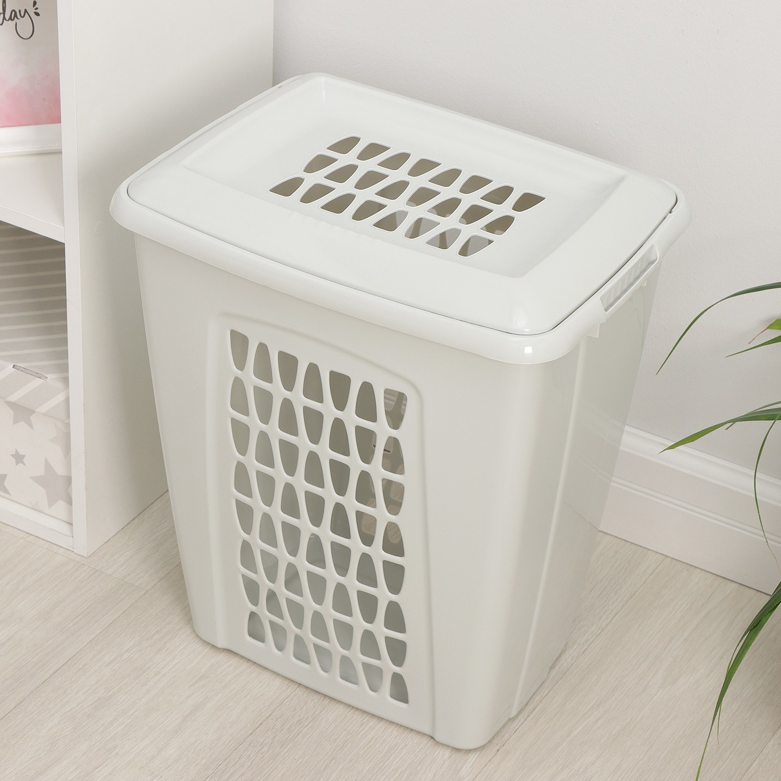 Корзина бельевая с крышкой «молетта», 45 л, 43x32x48 см, цвет светло-серый