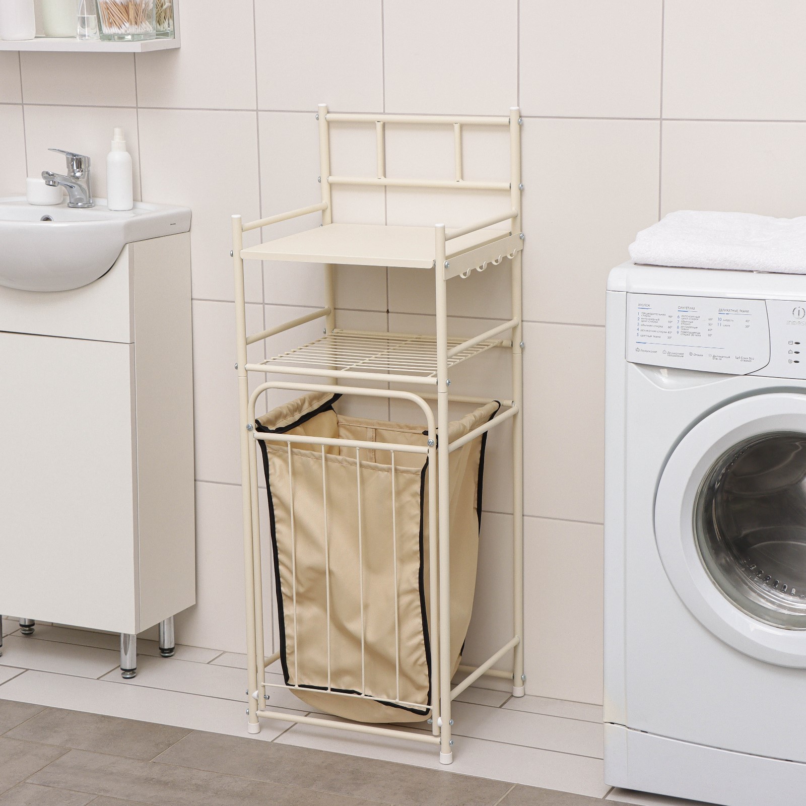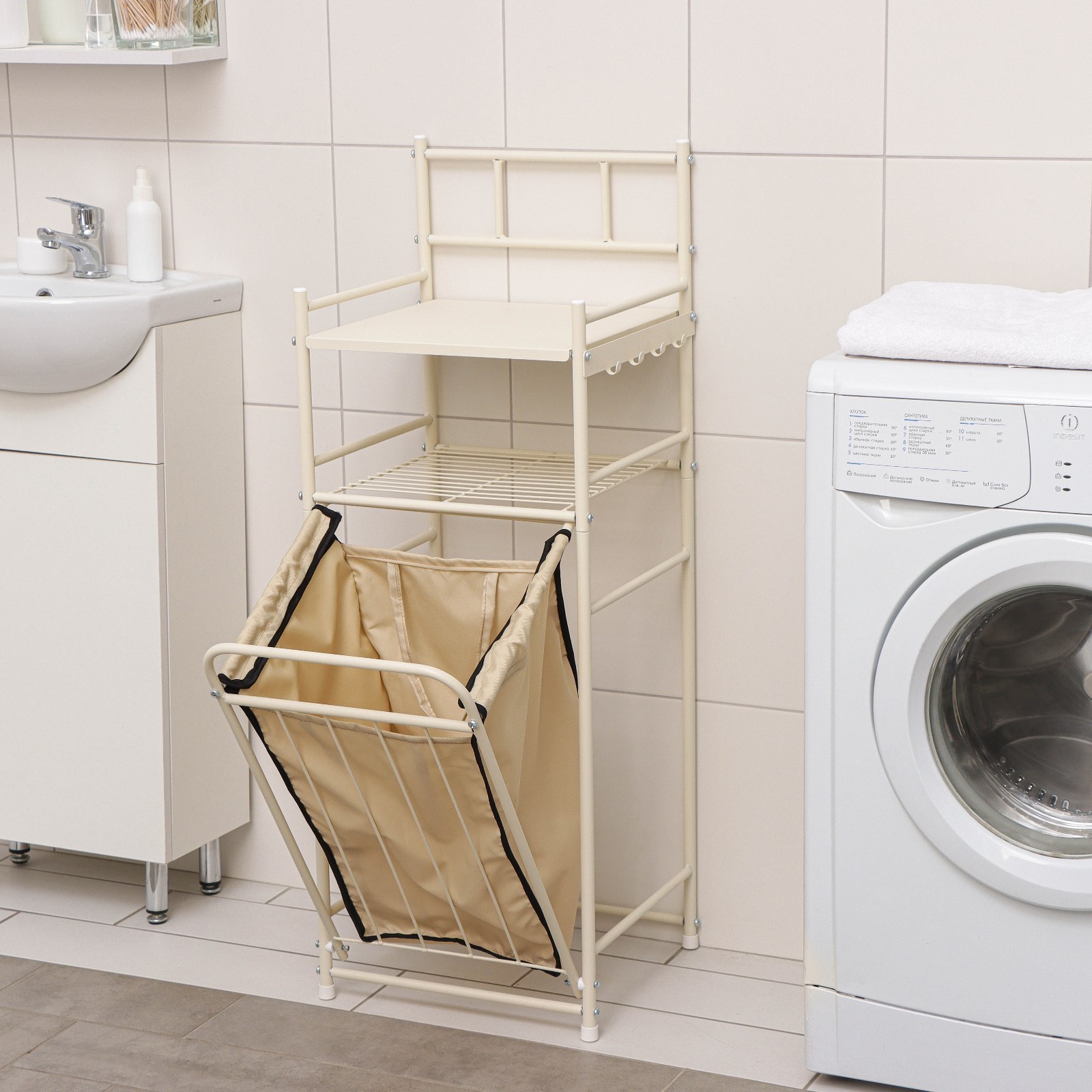 Стеллаж с корзиной для белья 2-х ярусный, 38x35x105 см, цвет бежевый