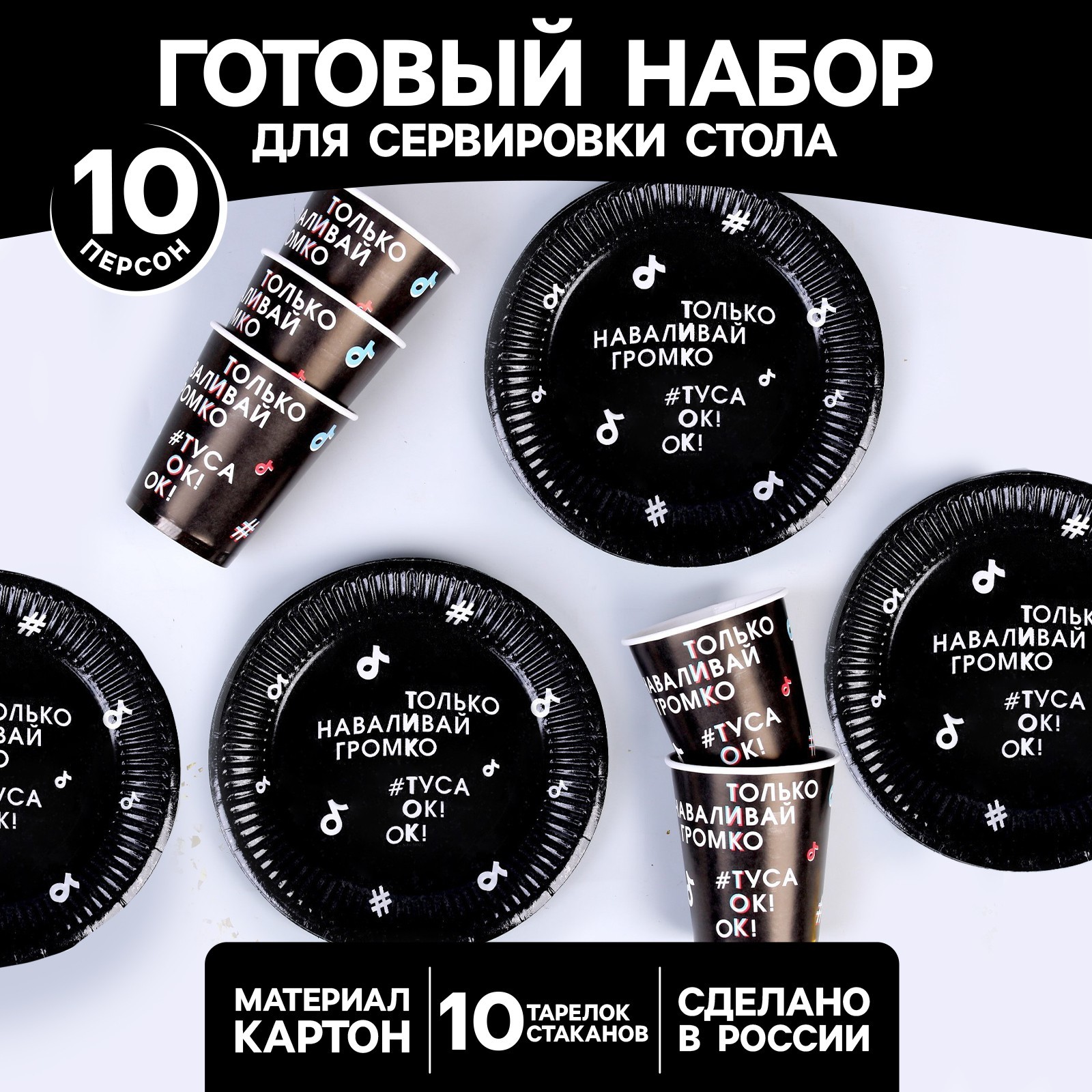 Набор бумажной посуды одноразовый туса ок» 10 стаканов, 10 тарелок