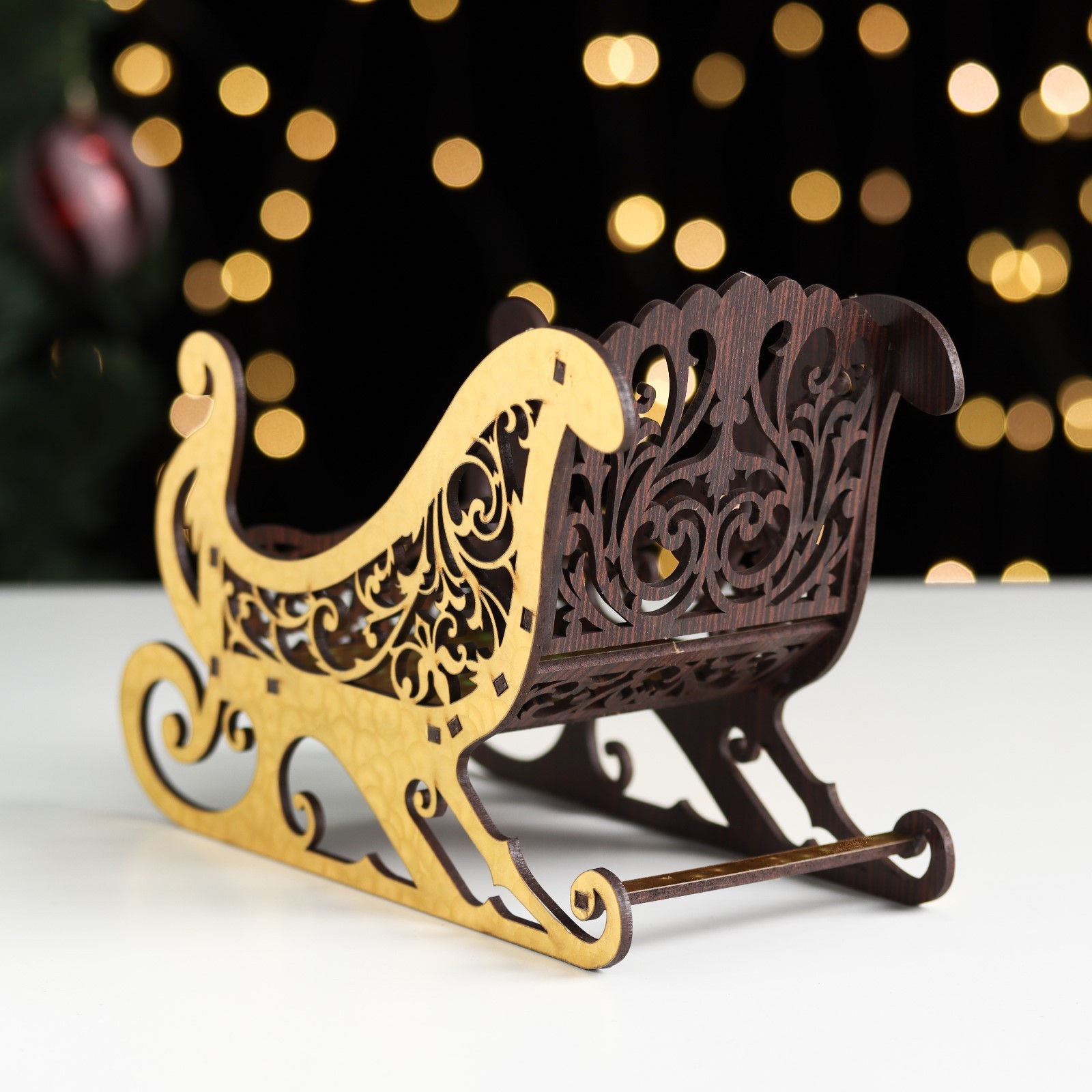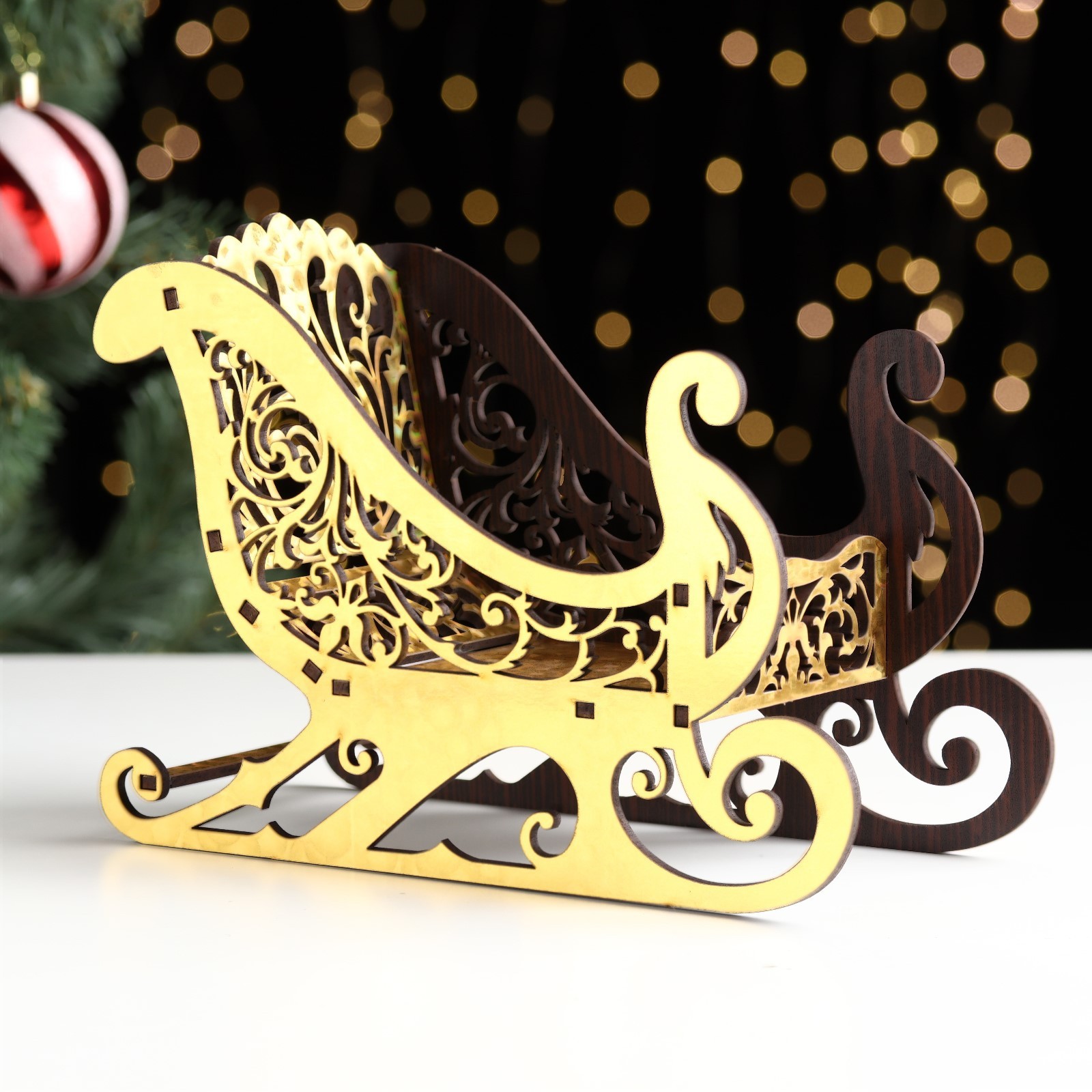 Конфетница «новогодние сани золотые», подарочная упаковка, 20x14x10 см