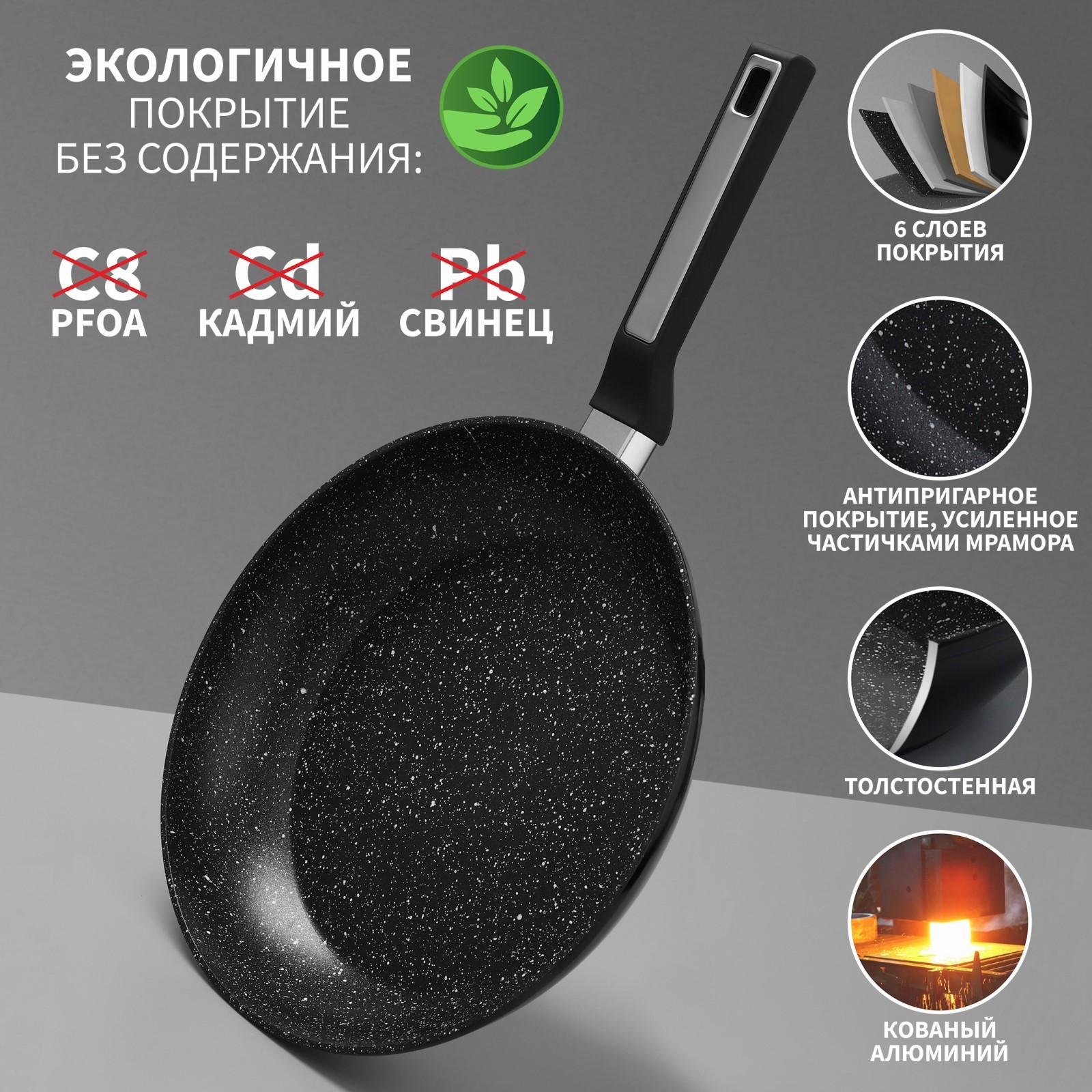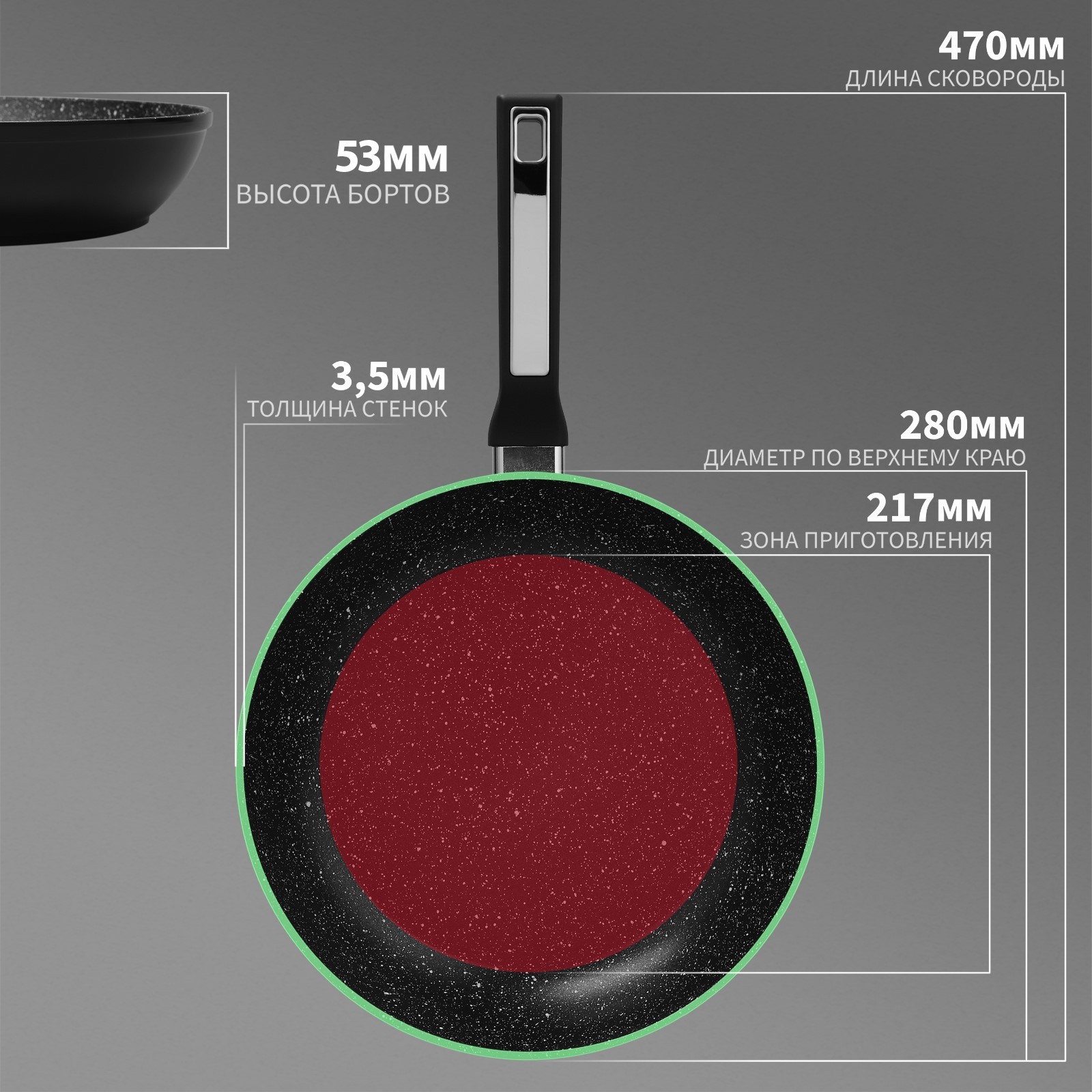 Сковорода Magistro Warrior, D=28 см, H=5,3 см, ручка Soft-touch, антипригарное покрытие, индукция
