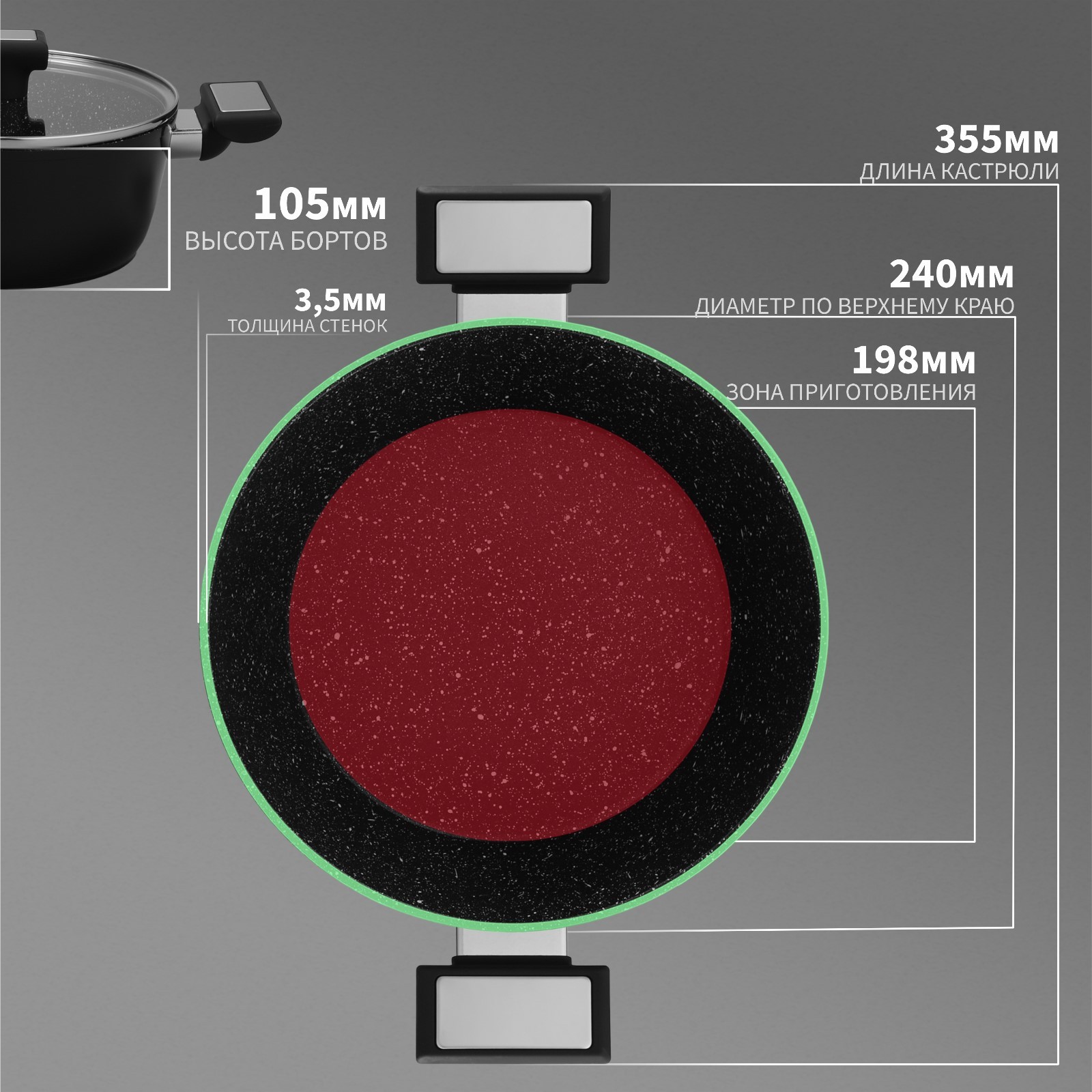 Кастрюля Magistro Warrior, 4 л, D=24 см, H=10,5 см, с крышкой, антипригарное покрытие, индукция