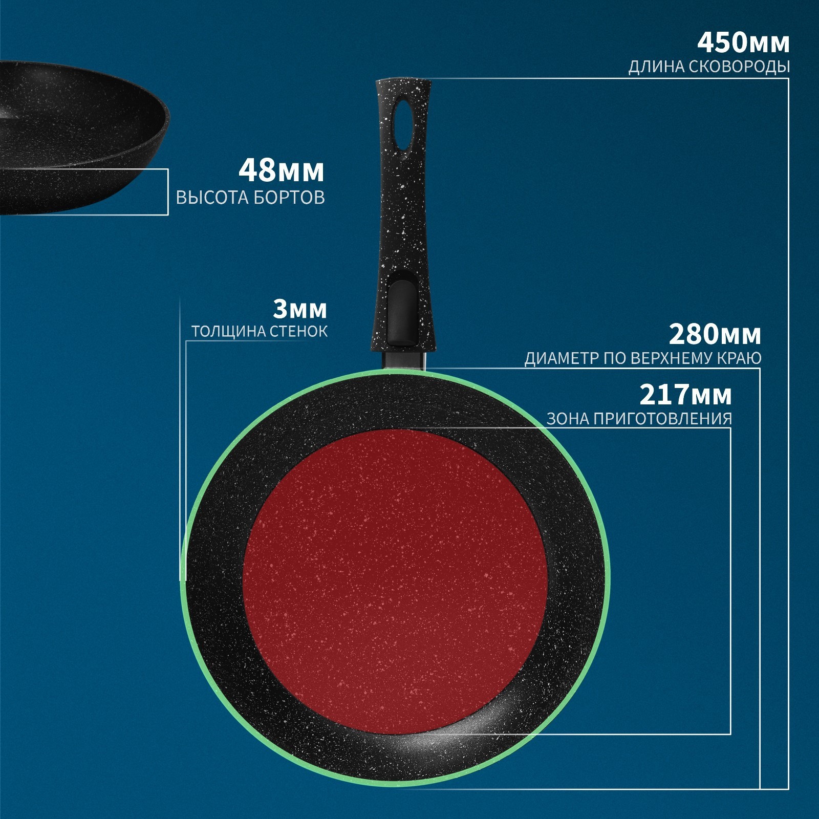 Сковорода кованая Magistro Dark, D=28 см, съёмная ручка Soft-touch, антипригарное покрытие, индукция