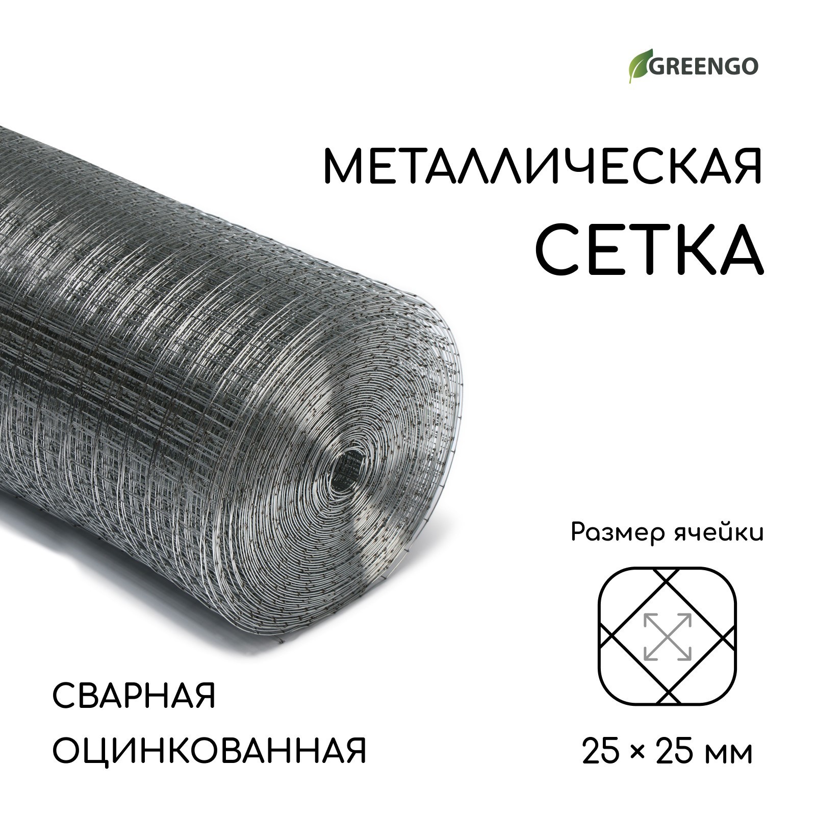Сетка оцинкованная, сварная, 25 1 м, ячейка 25 25 мм, D=1 мм, Greengo