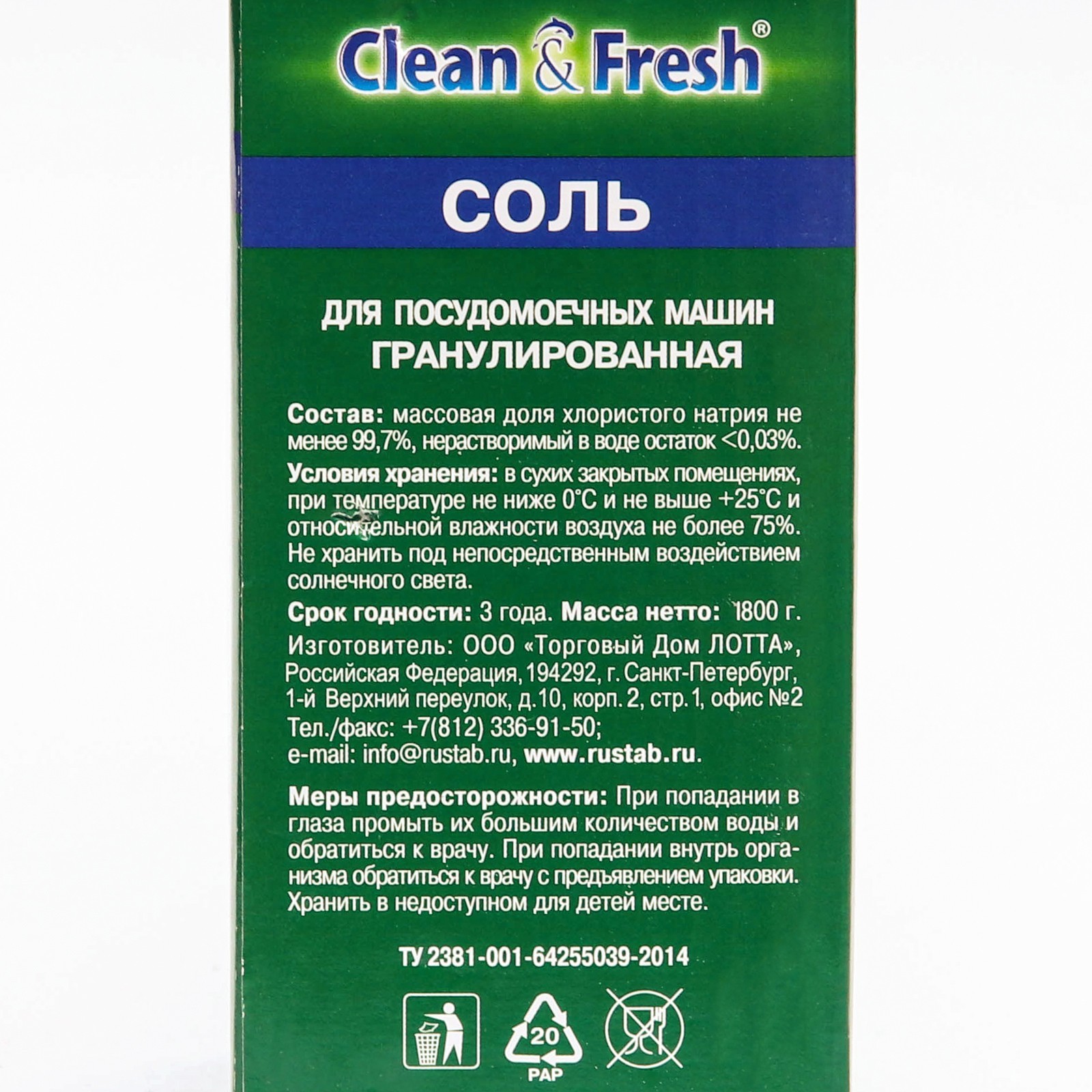 Соль для посудомоечных машин Clean&fresh гранулированная, 1800 г