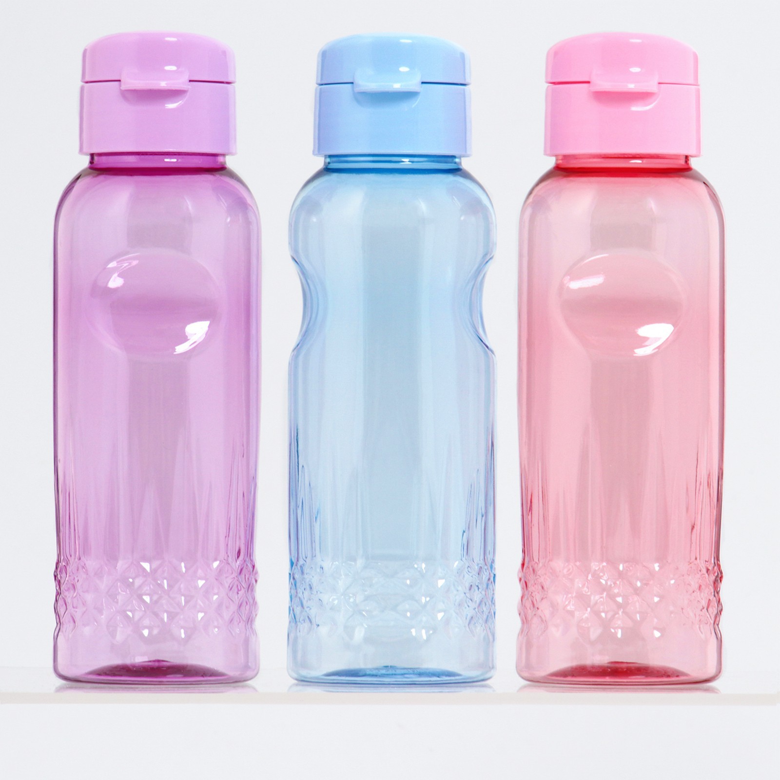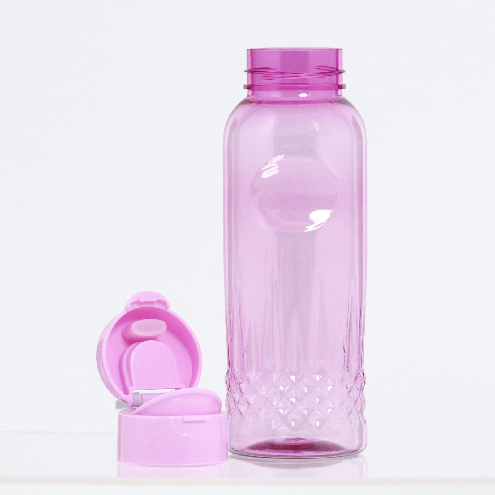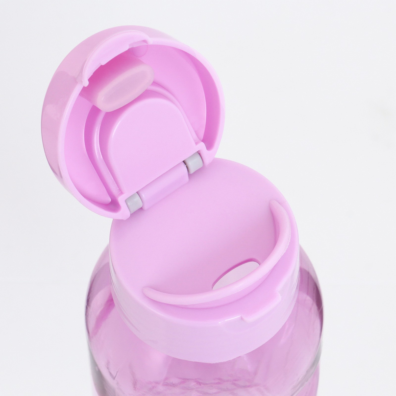 Бутылка для воды спортивная, 650 мл, "флорес", 4.7 х 22 х 7 см, микс. Стильная и функциональная бутылка для воды станет незаменимым спутником для людей, ведущих активный образ жизни, для любителей спорта, туризма, пеших прогулок. Спортивная бутылка имеет лаконичный дизайн, совмещенный с удобством использования. Такая бутылка для воды подойдет в школу и на секции, для занятий физкультурой и прогулок с друзьями. Изделие выполнено из пищевого пластика и предназначено для употребления воды, соков и других напитков. Рекомендации Не мыть в посудомоечной машине. Плотно закрывать крышку. Цвет: МИКС Объём, мл: 550 Материал: Пластик Вид: Бутылка Особенности: На кнопке  развернуть описание ▼