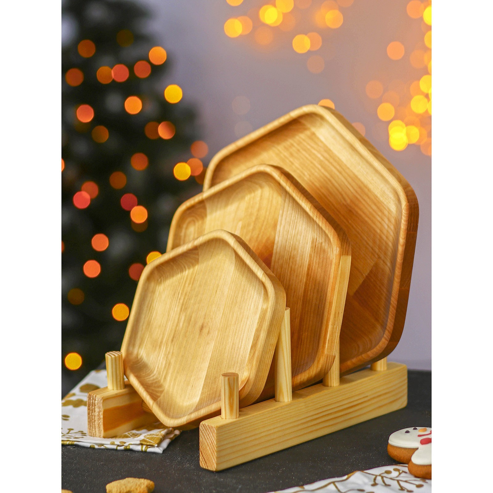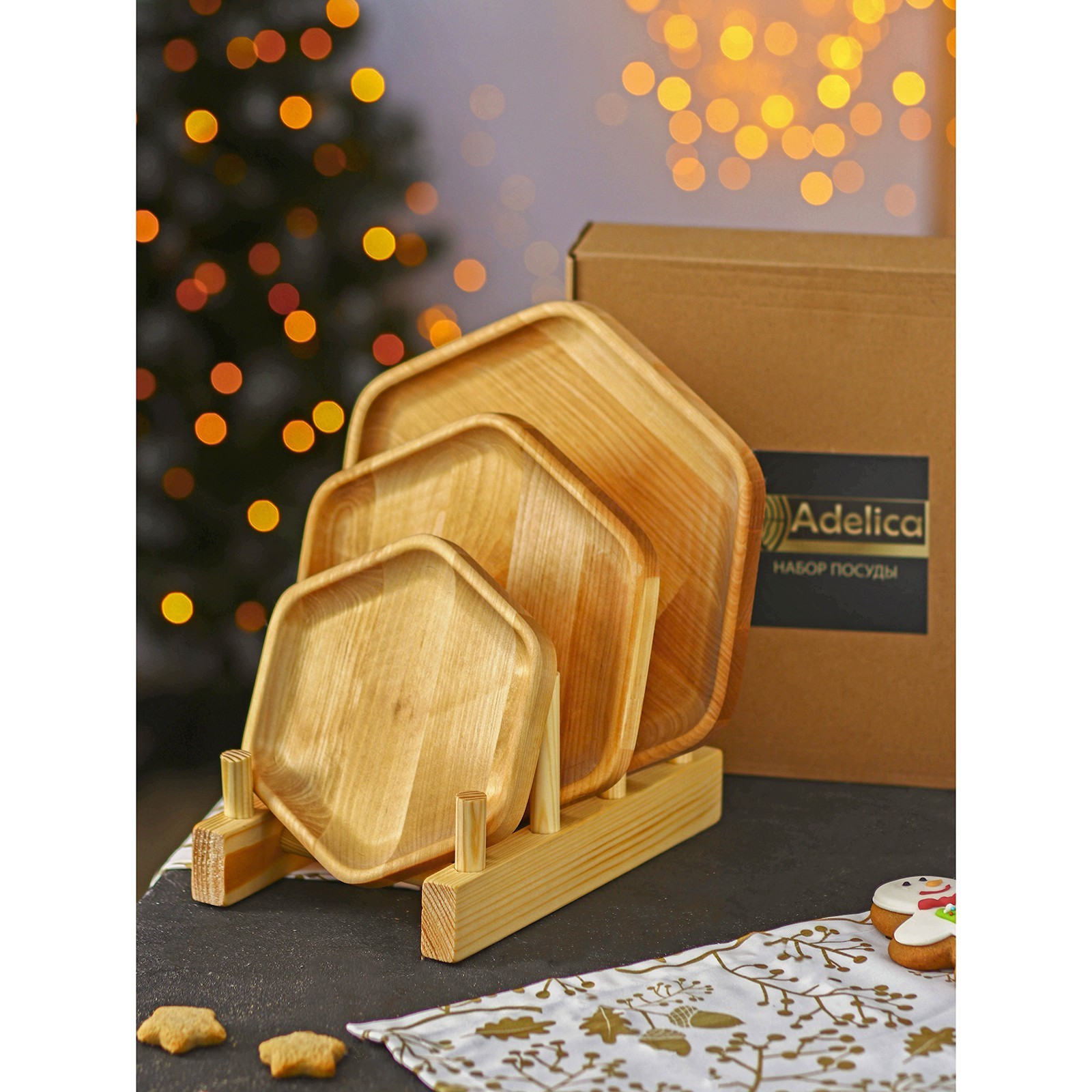 Подарочный набор деревянной посуды Adelica «ромб», тарелки 3 шт, подставка: D=24 см, D=20 см, D=16 см, берёза
