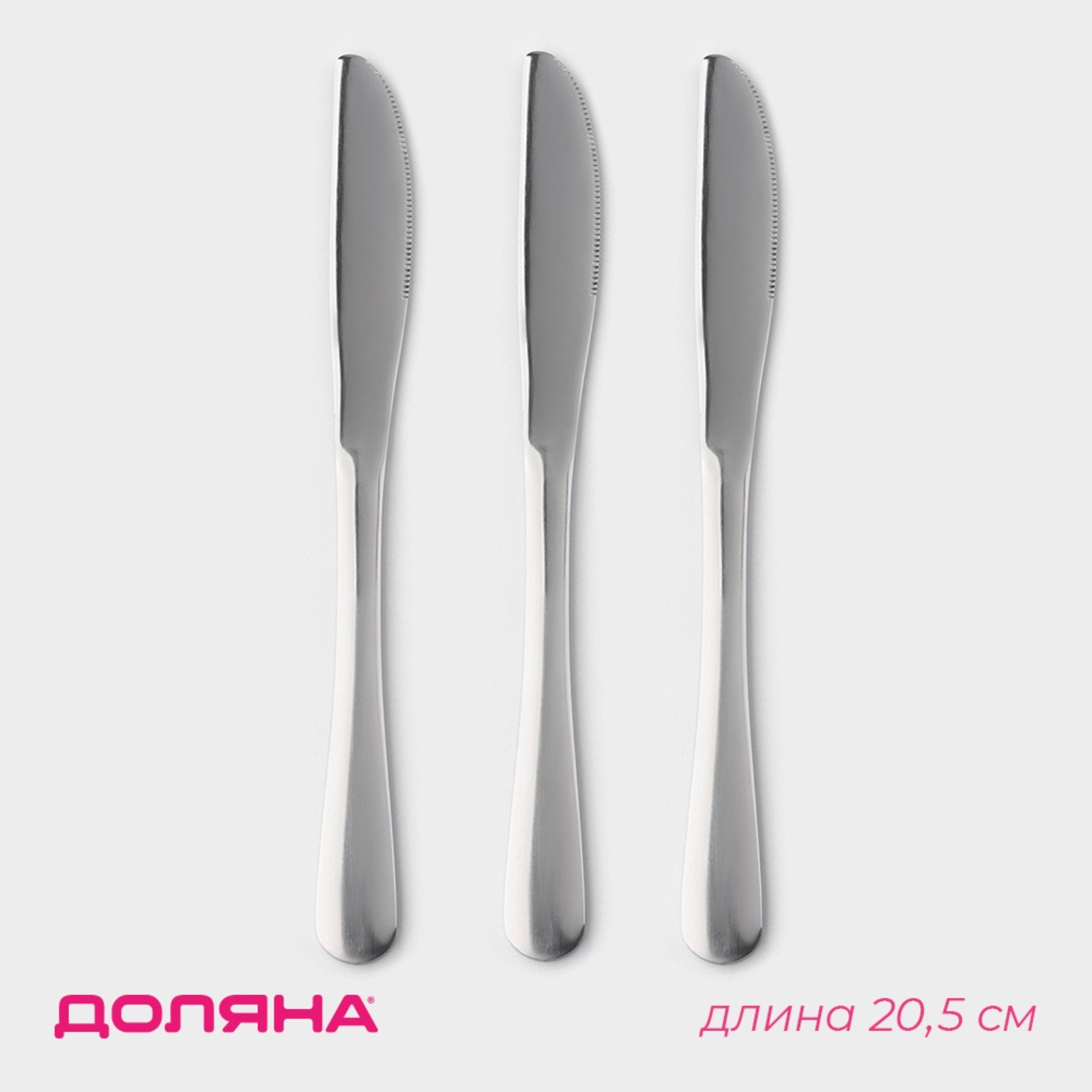 Набор ножей десертных из нержавеющей стали доляна, H=20,5 см, толщина рабочей части 2,2 мм, толщина ручки 5 мм, 410 сталь, 3 шт