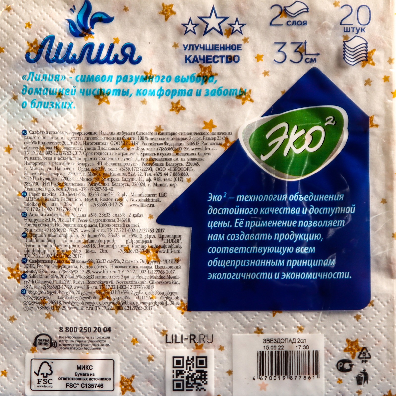 Салфетки бумажные лилия 33х33 "звездопад" 2сл 20л.