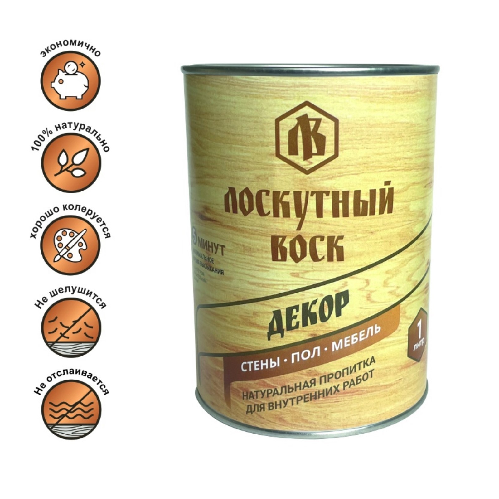Влаго-биозащитная пропитка "лоскутный воск декор", бесцветный, 1л, железная банка