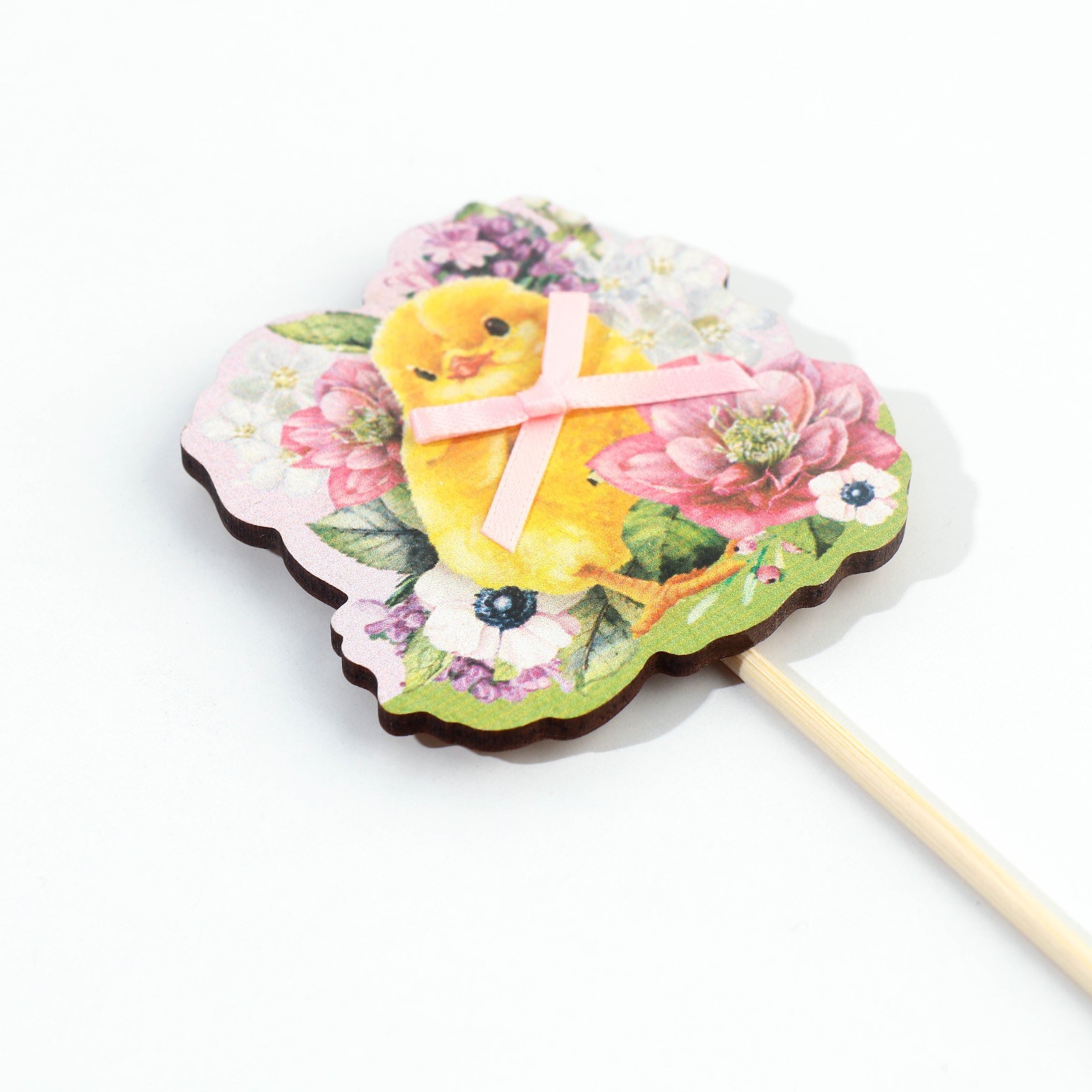 Топпер деревянный для украшения кулича «цыплёнок«, 11 х 16.5 см.