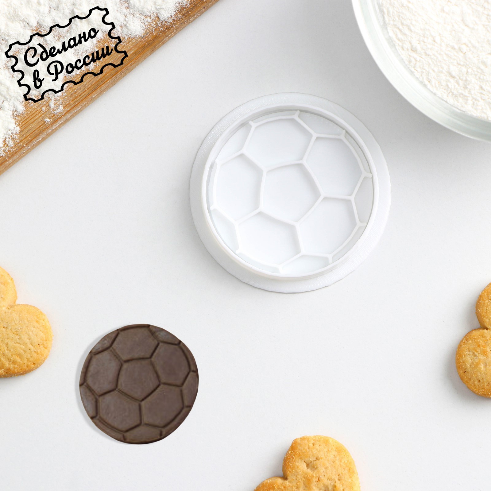 Форма для печенья «футбольный мяч», вырубка, штамп, D=6 см, цвет белый