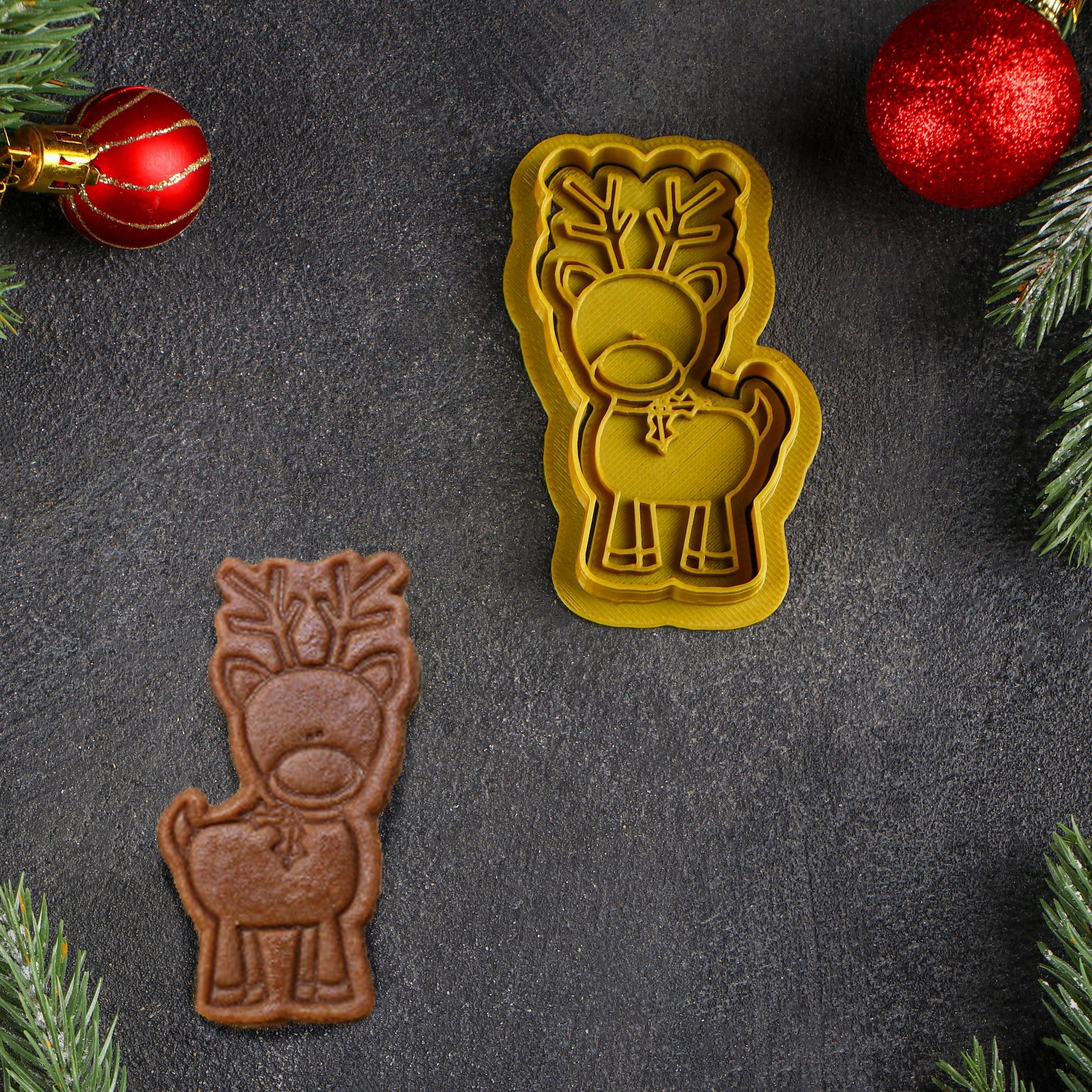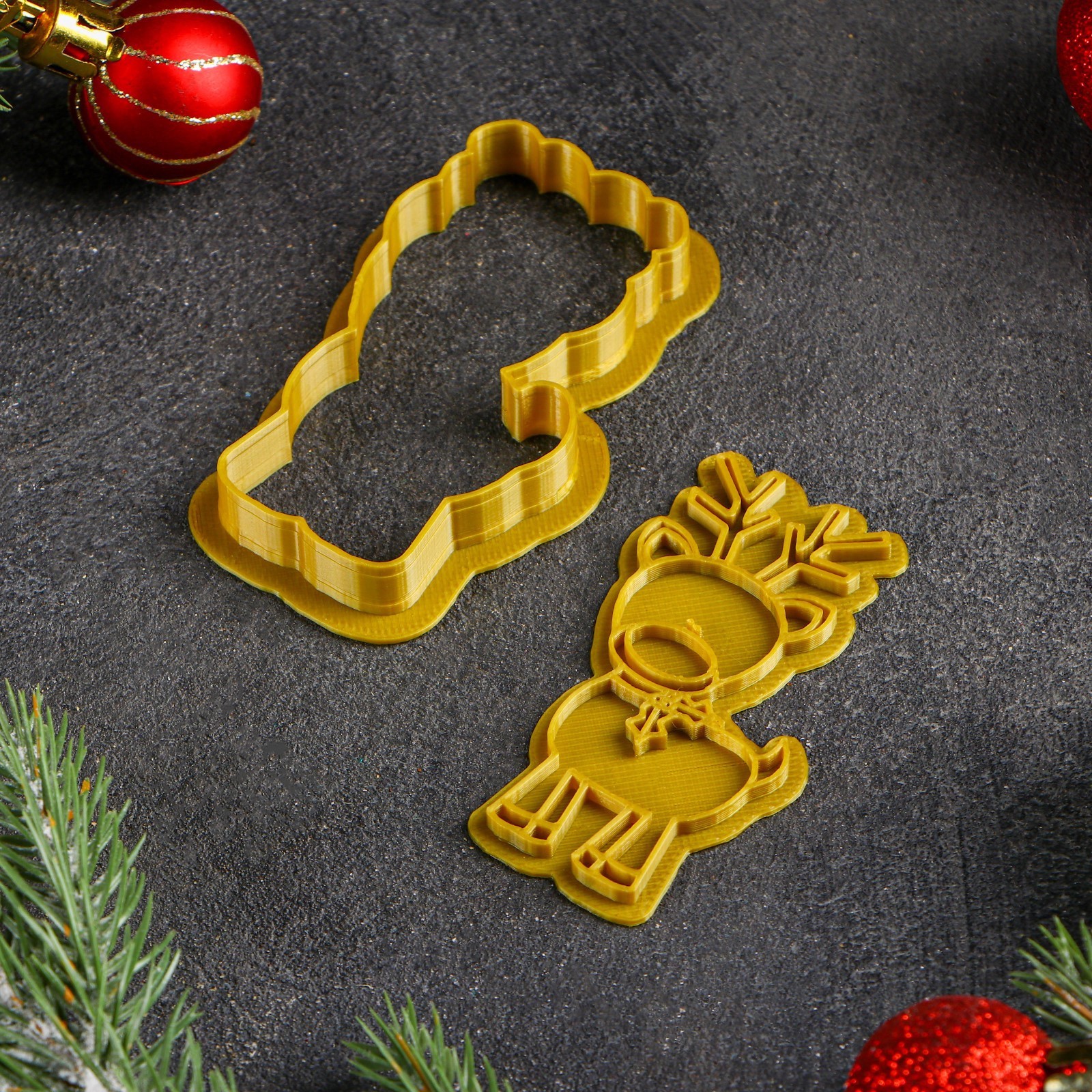Форма для печенья «рождественский олень», вырубка, штамп, цвет золотой