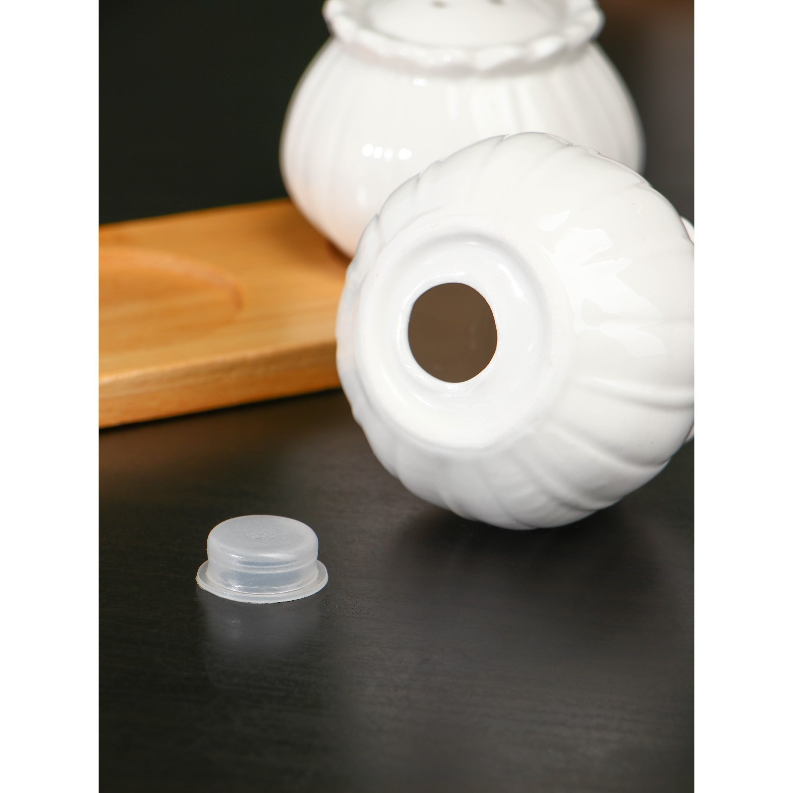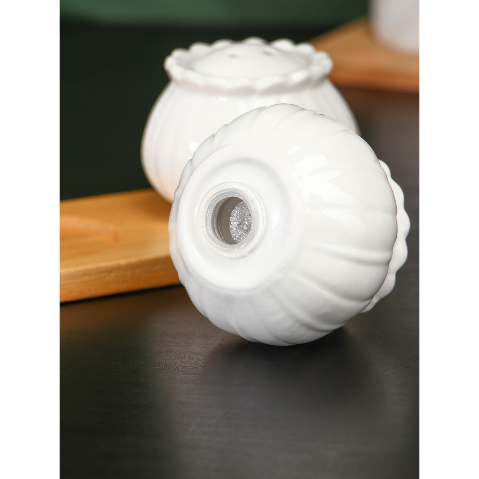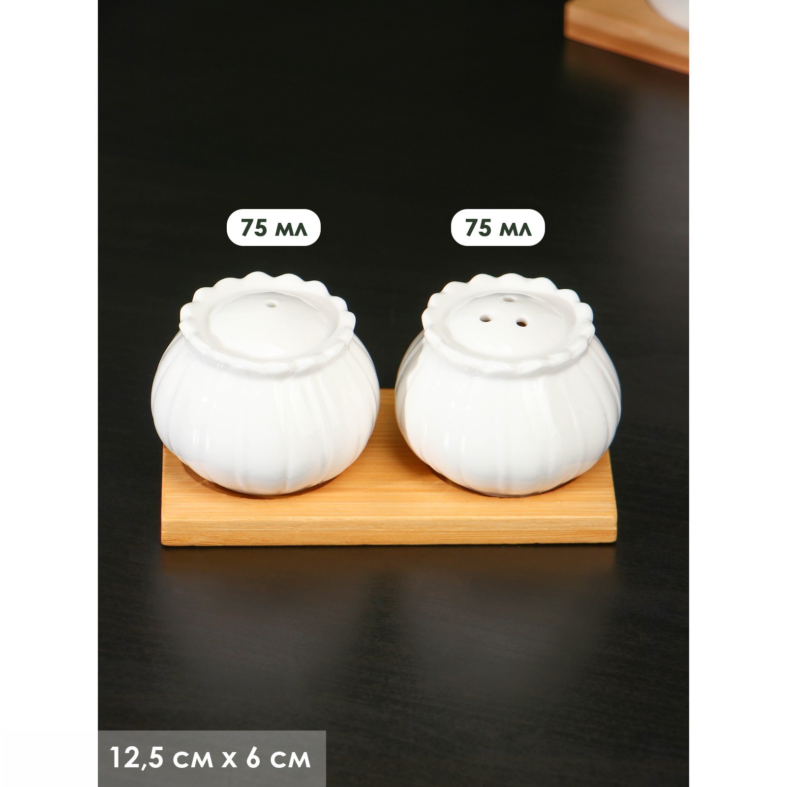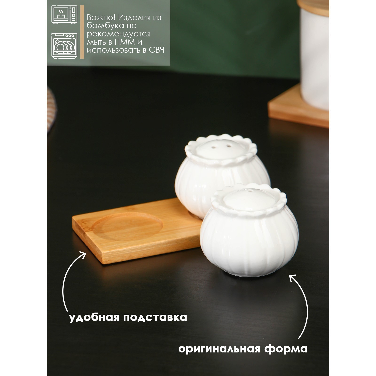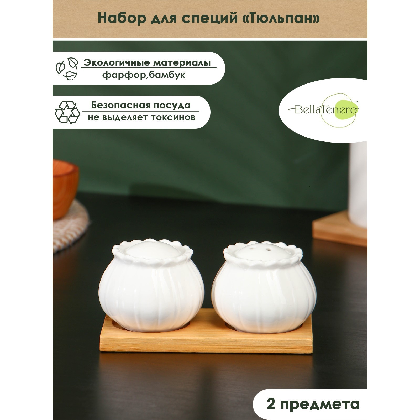 Набор фарфоровый для специй на бамбуковой подставке Bellatenero «тюльпан», 2 предмета: солонка 75 мл, перечница 75 мл, цвет белы
