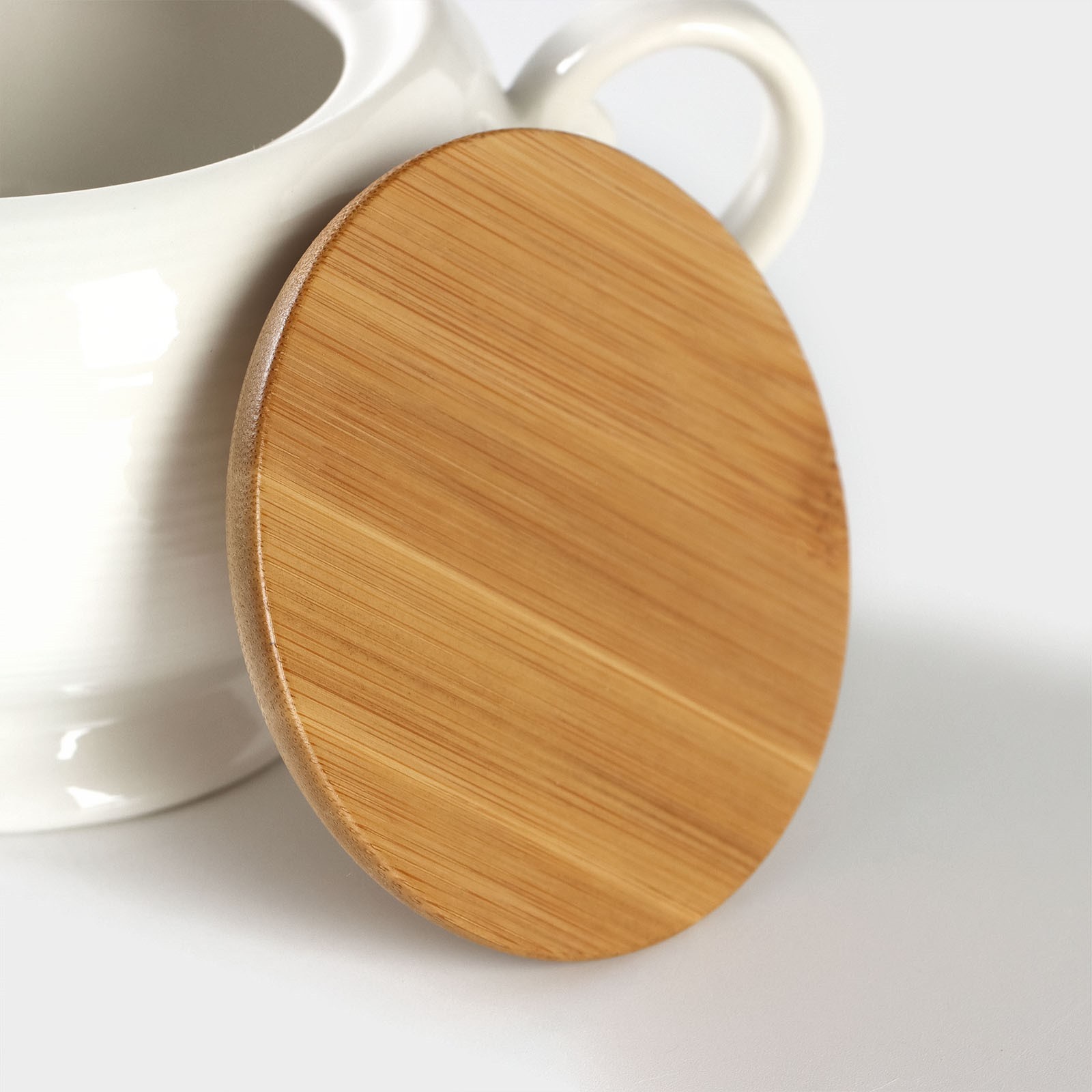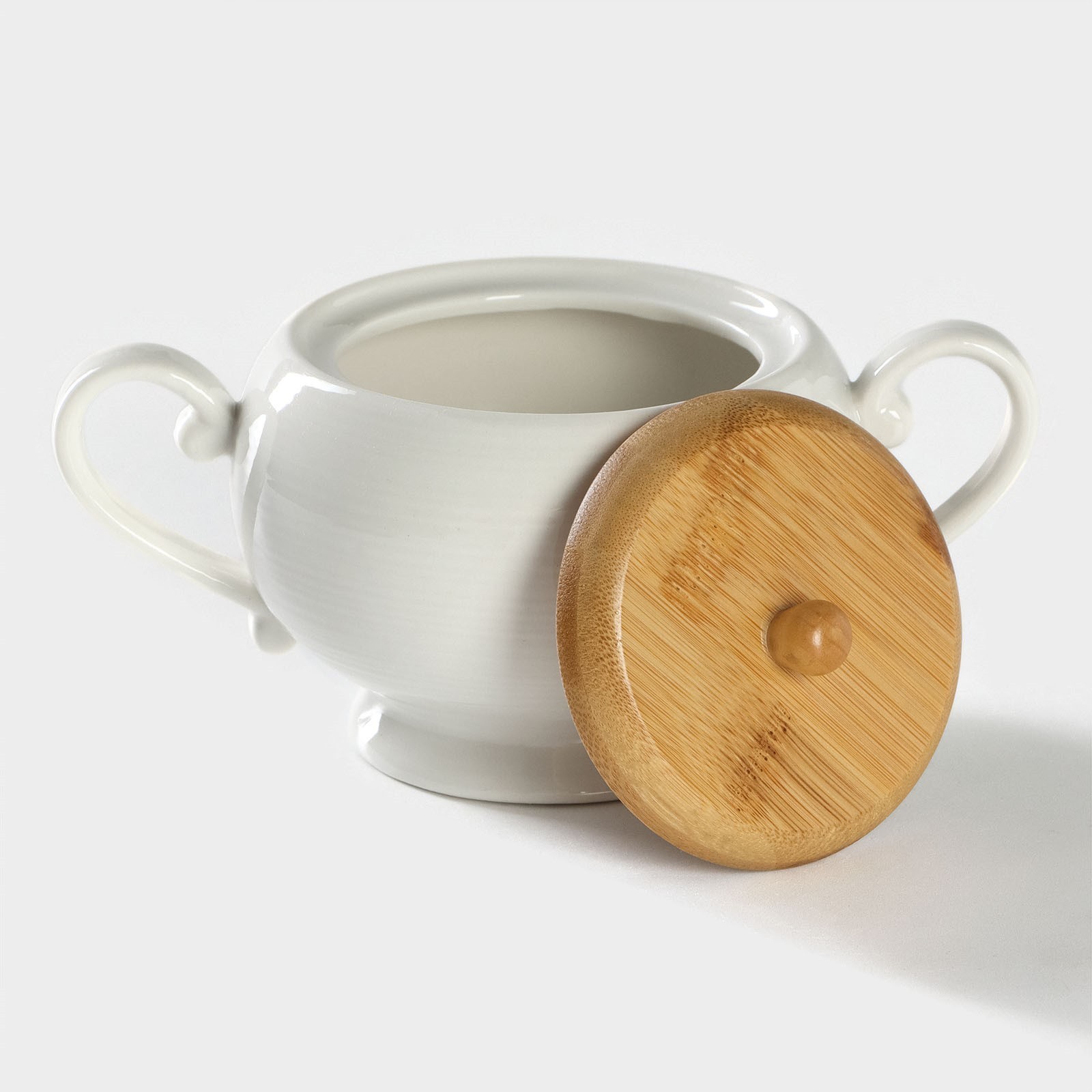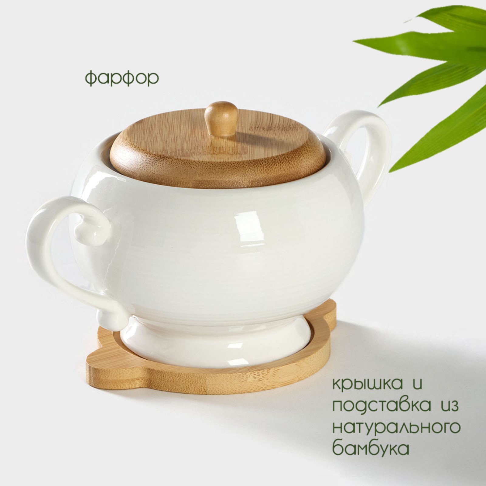 Сахарница фарфоровая на бамбуковой подставке Bellatenero, 500 мл, цвет белый