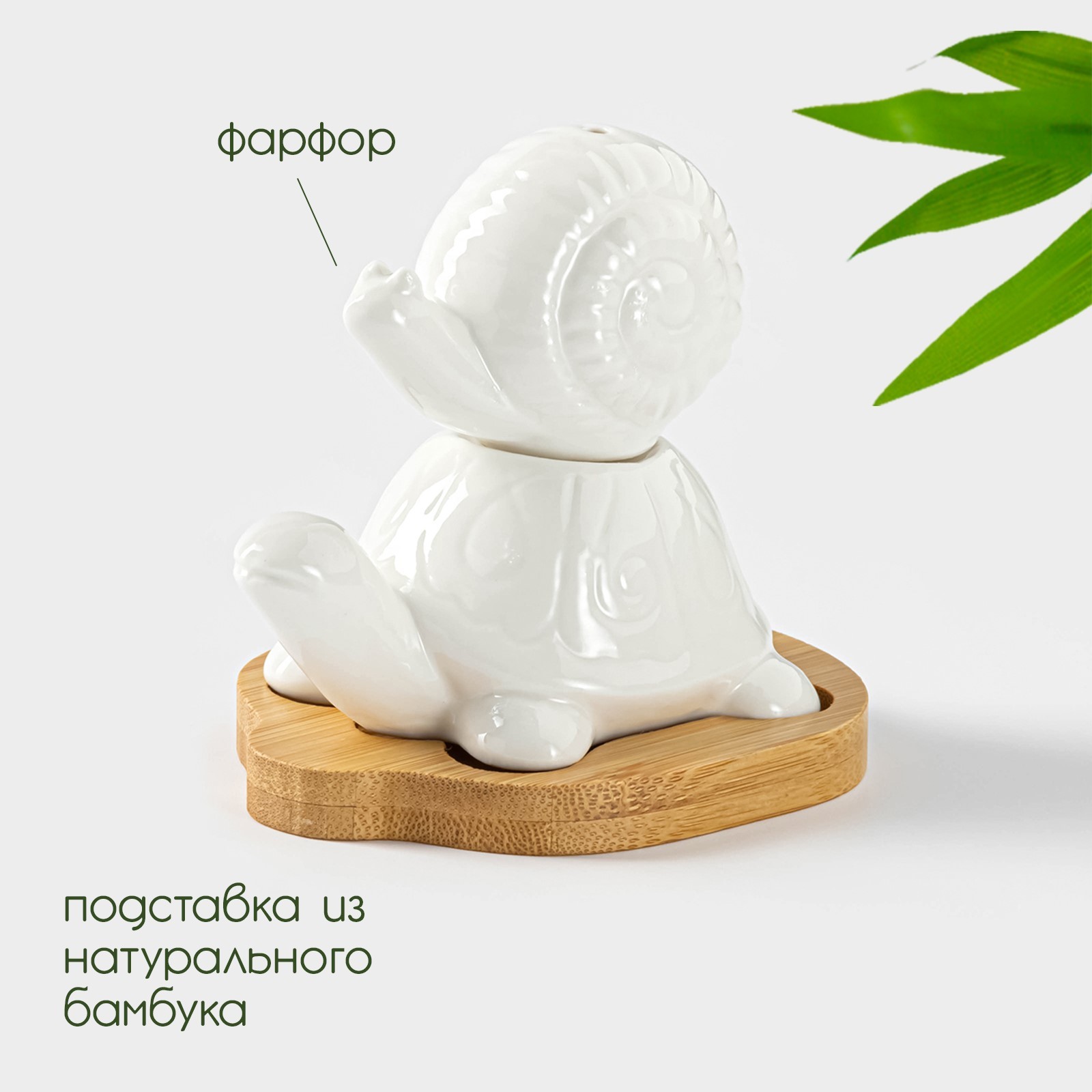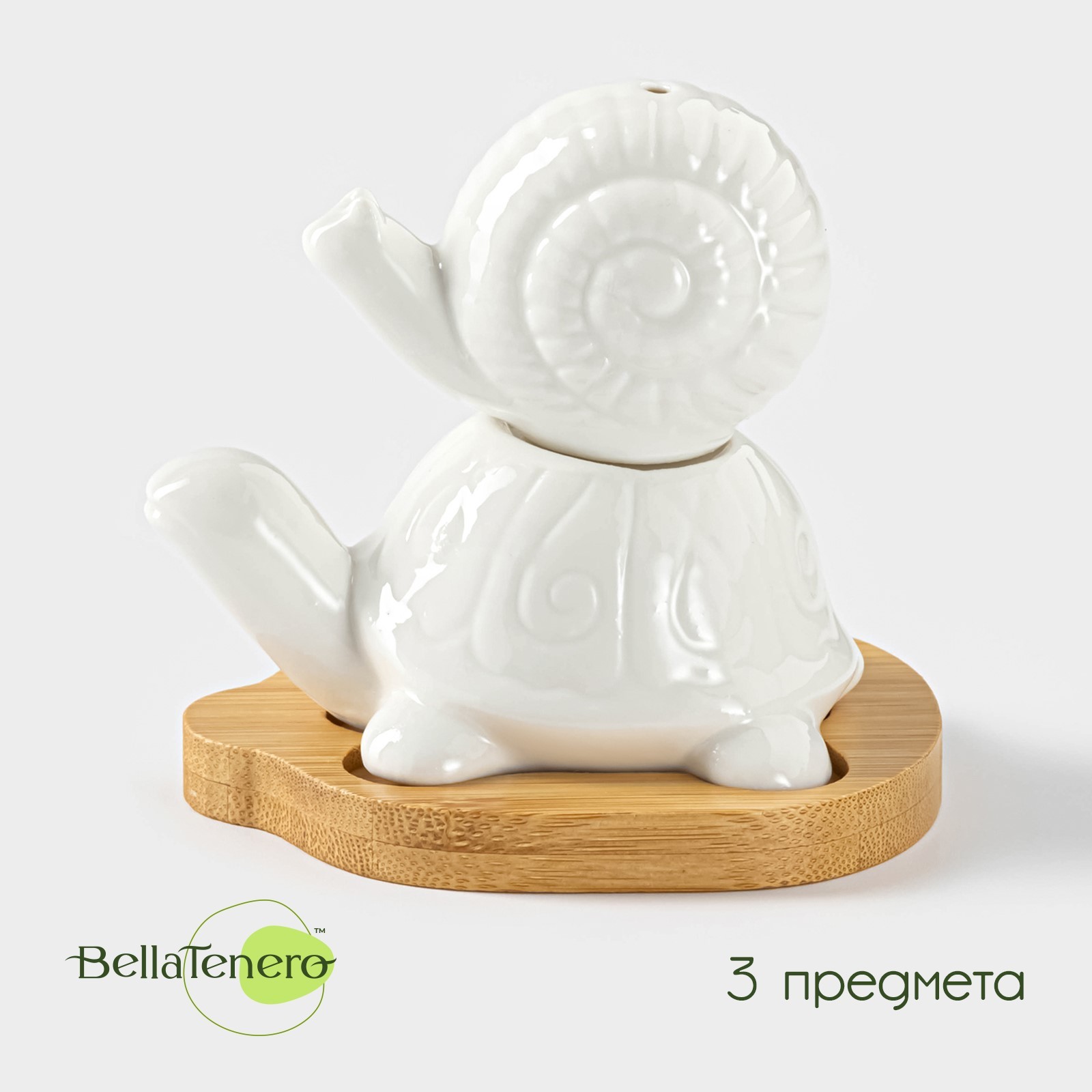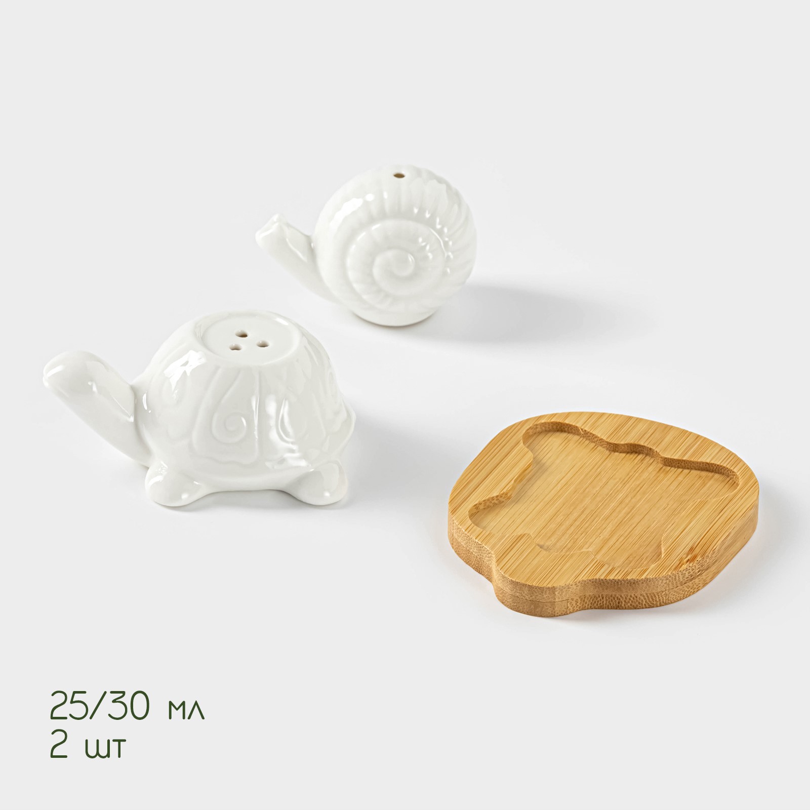 Набор для специй на деревянной подставке Bellatenero «черепаха и улитка», 2 предмета: солонка 25 мл, перечница 30 мл, цвет белый