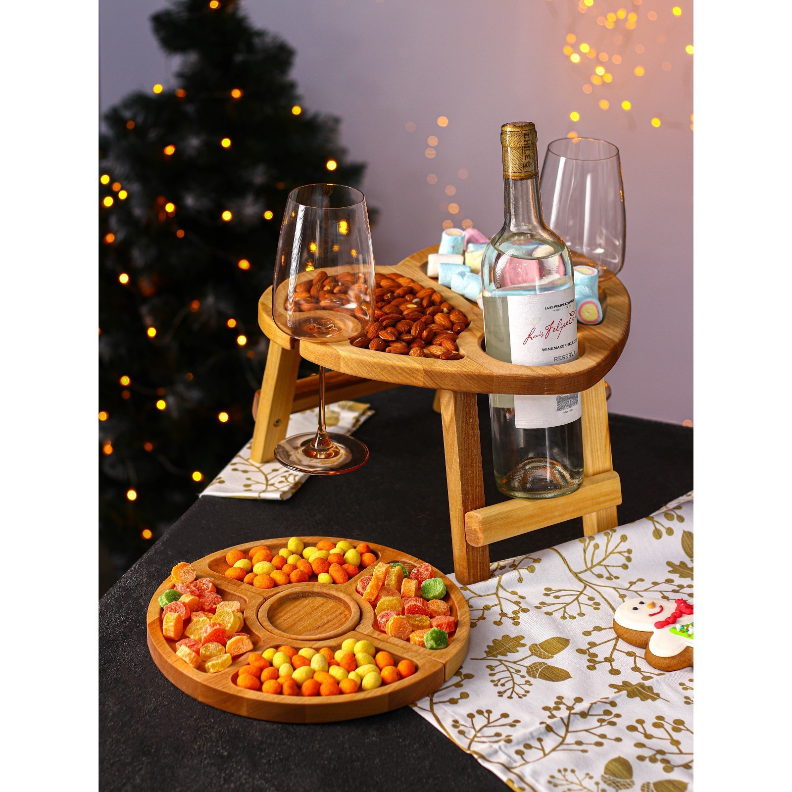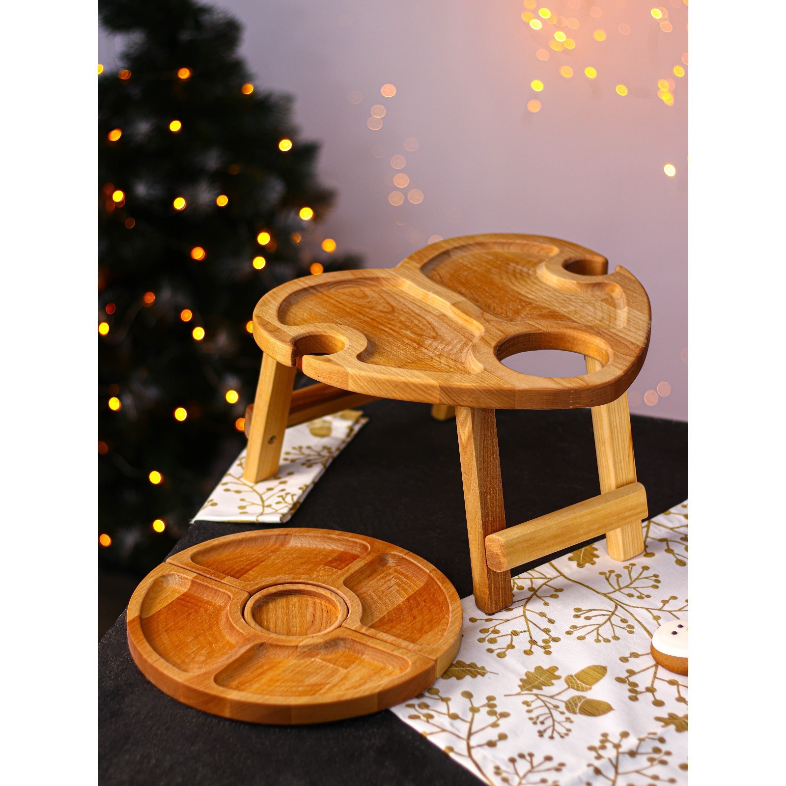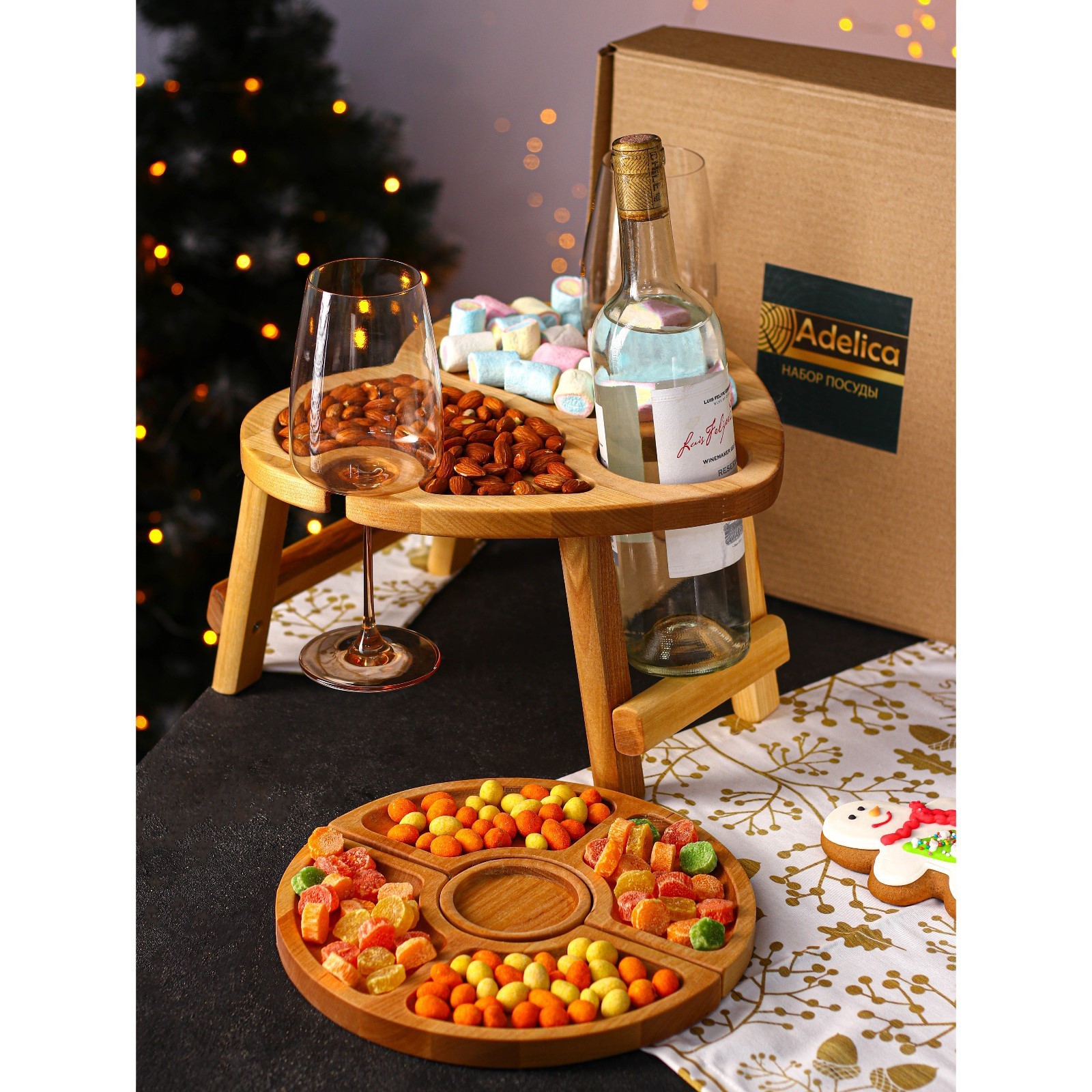 Подарочный набор деревянной посуды Adelica «с любовью», столик для вина D=32 см, менажница D=25 см, подсвечник D=8 см, берёза
