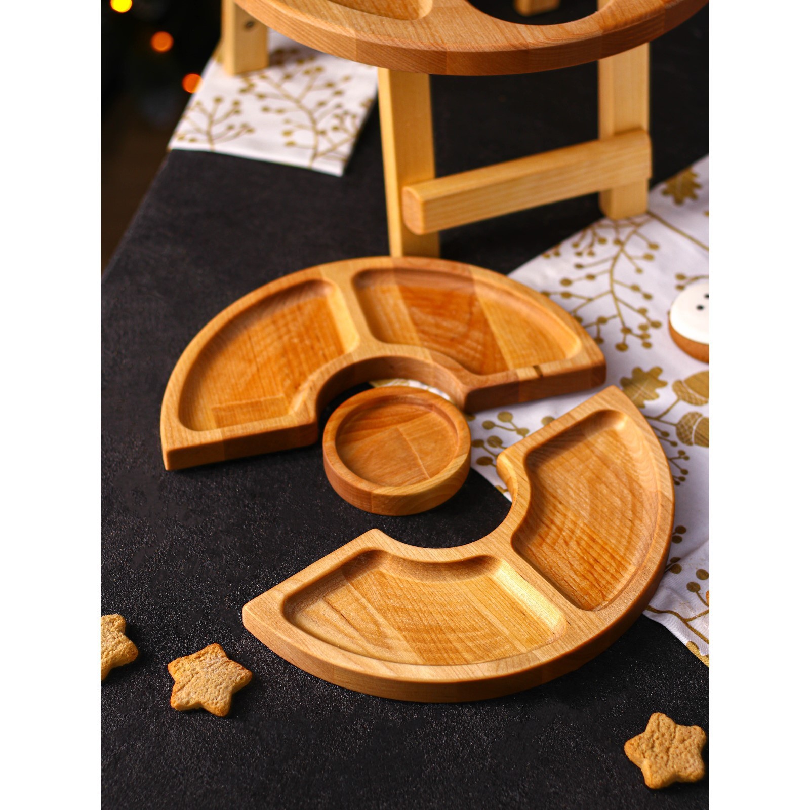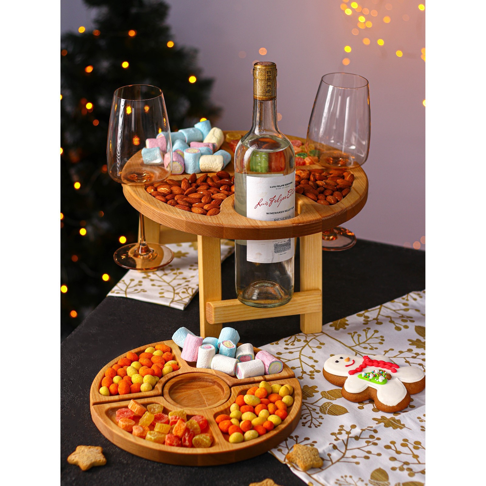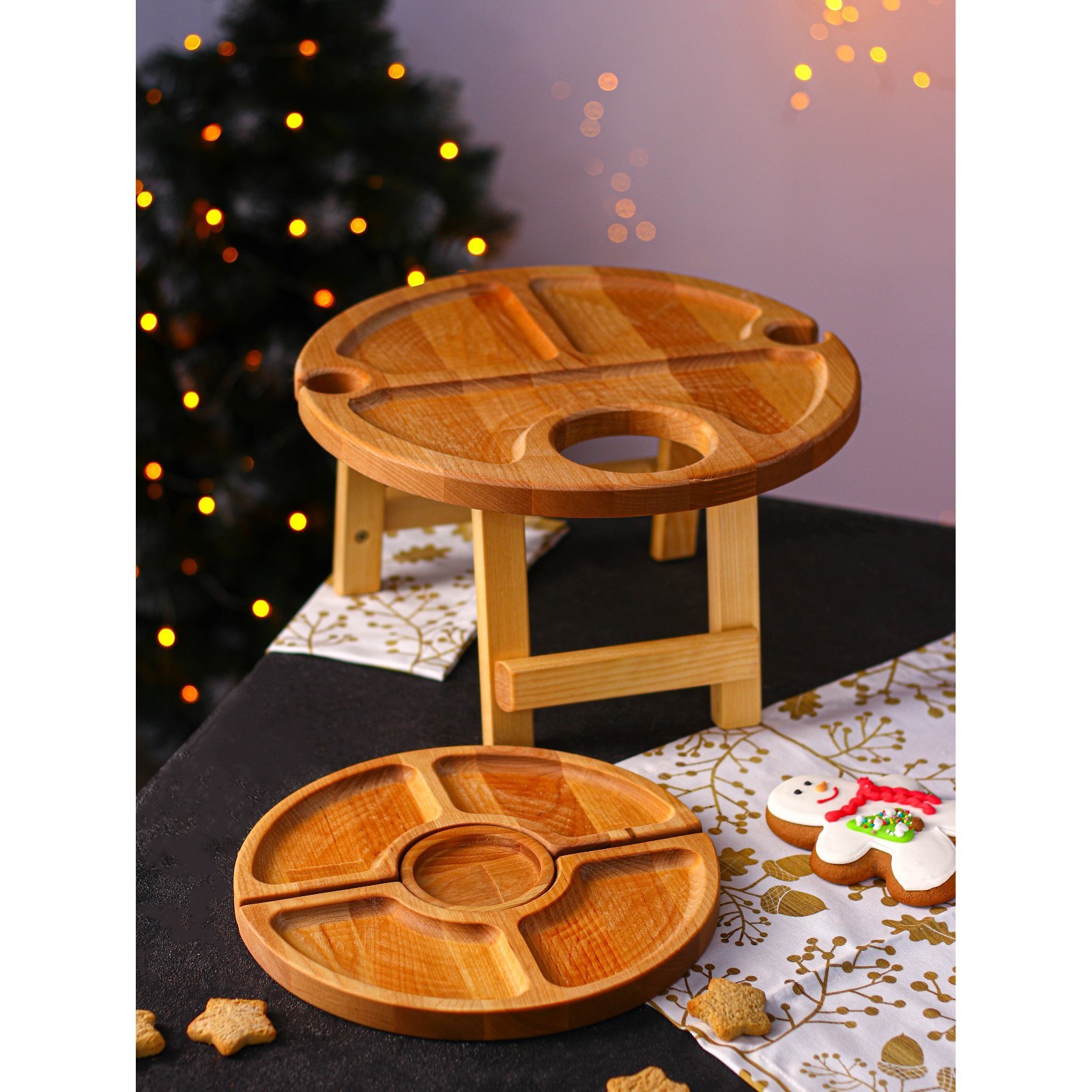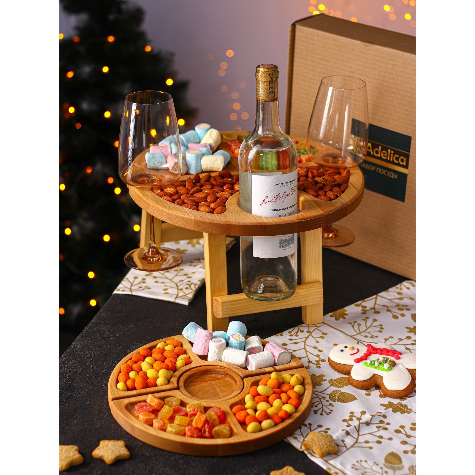 Подарочный набор деревянной посуды Adelica «винный», столик для вина D=32 см, менажница D=25 см, подсвечник D=8 см, берёза