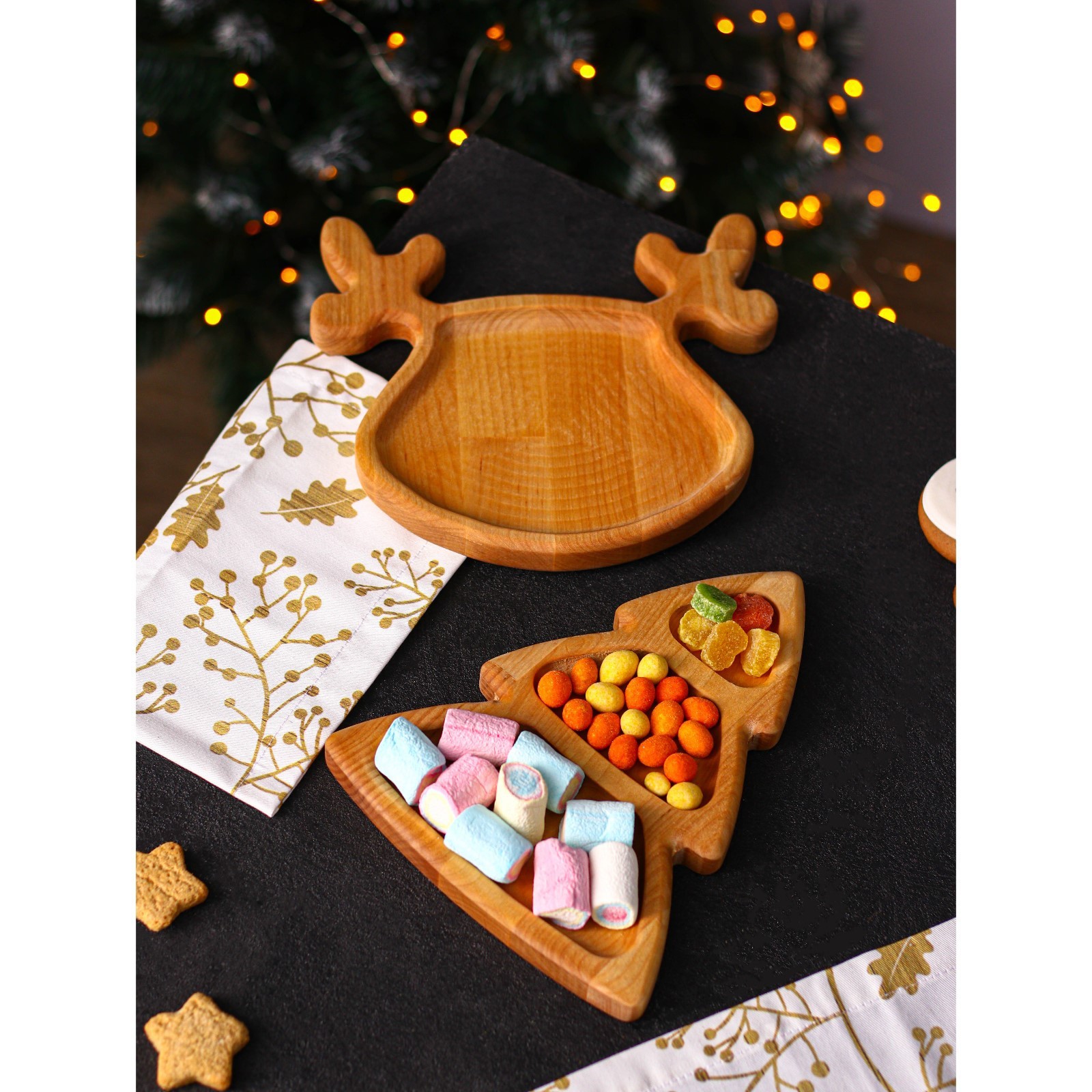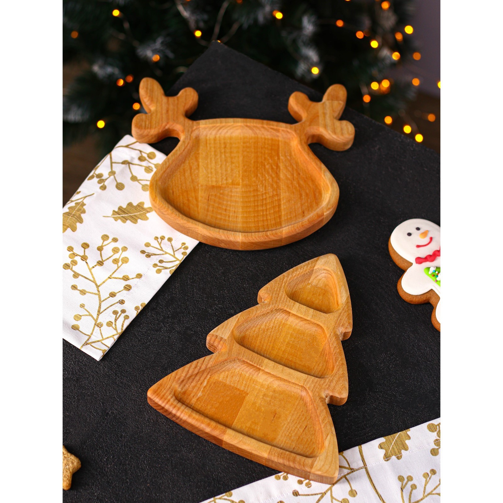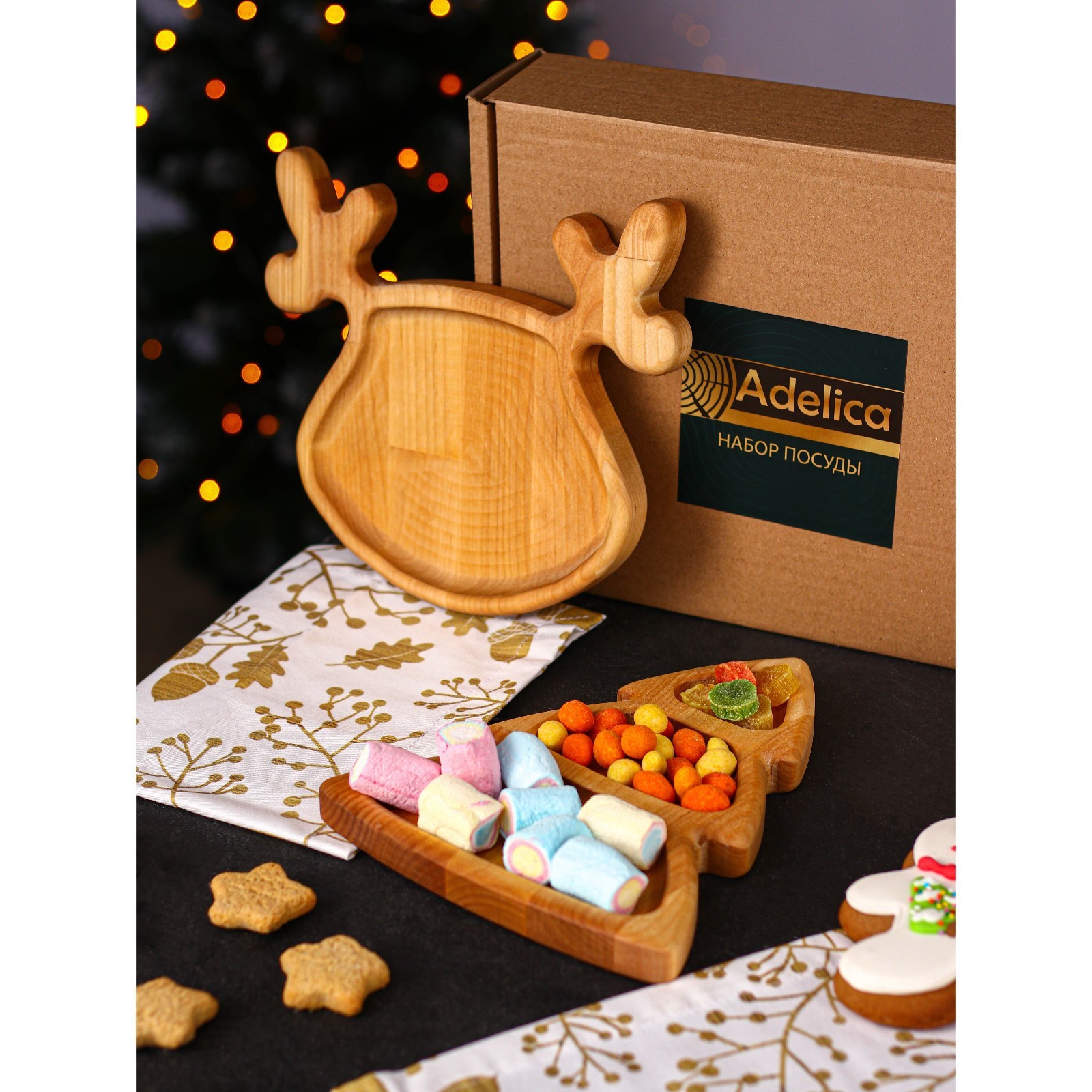 Подарочный набор посуды Adelica «новогодний олень», менажница ёлка 22x18 см, тарелка 22x20 см, берёза