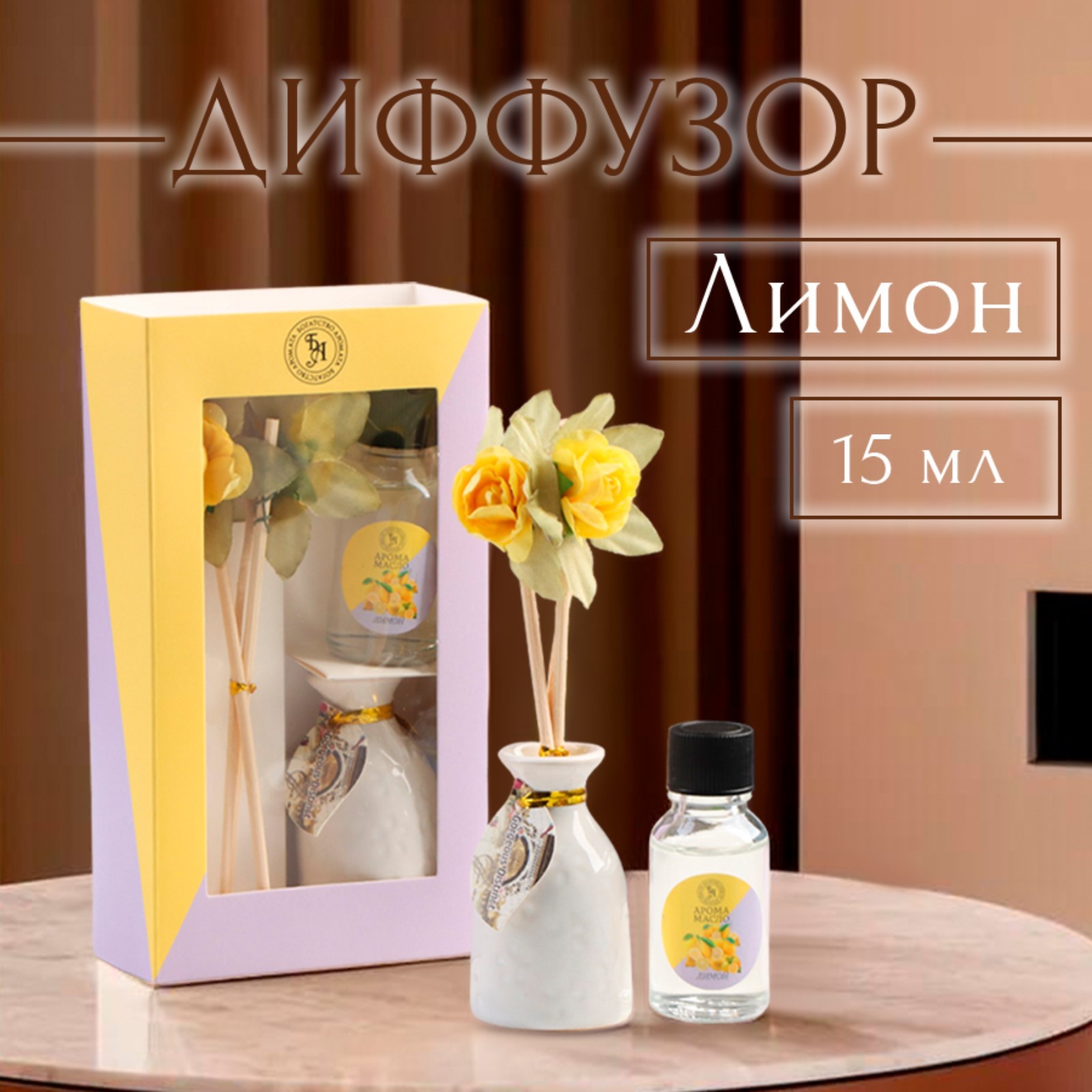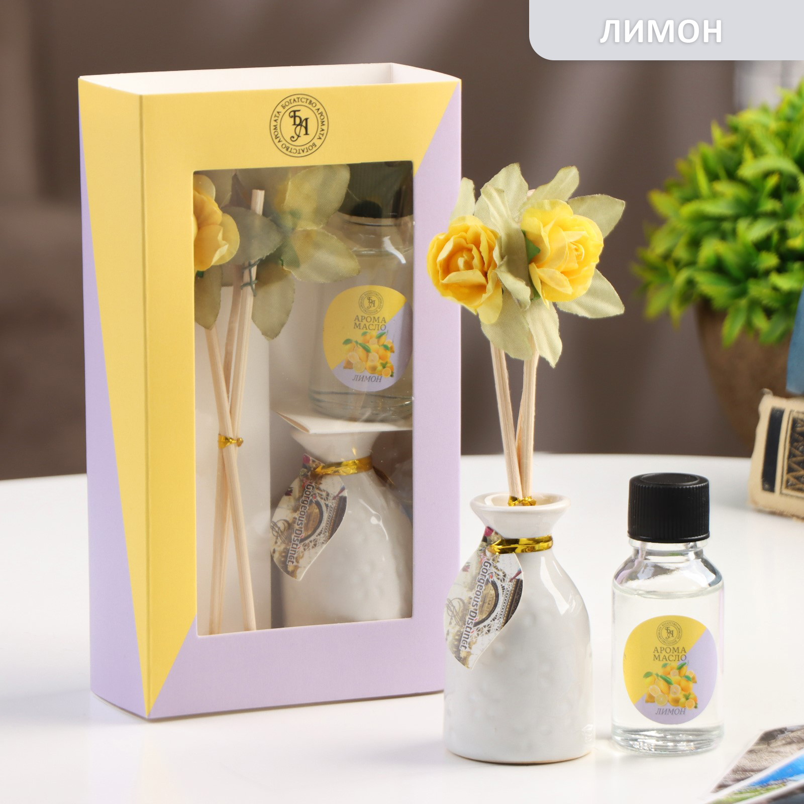 Набор подарочный с диффузором "ваза с цветком" лимон, "богатство аромата"