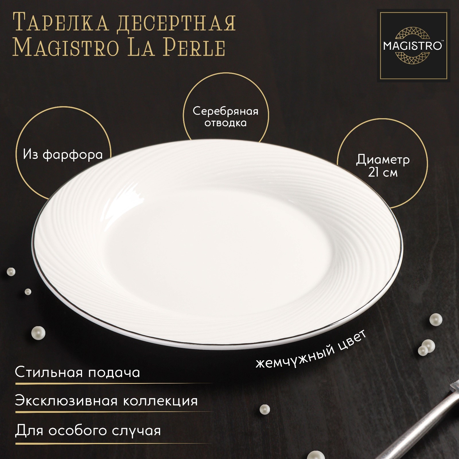 Тарелка фарфоровая десертная с утолщённым краем Magistro La Perle, D=21 см, цвет белый