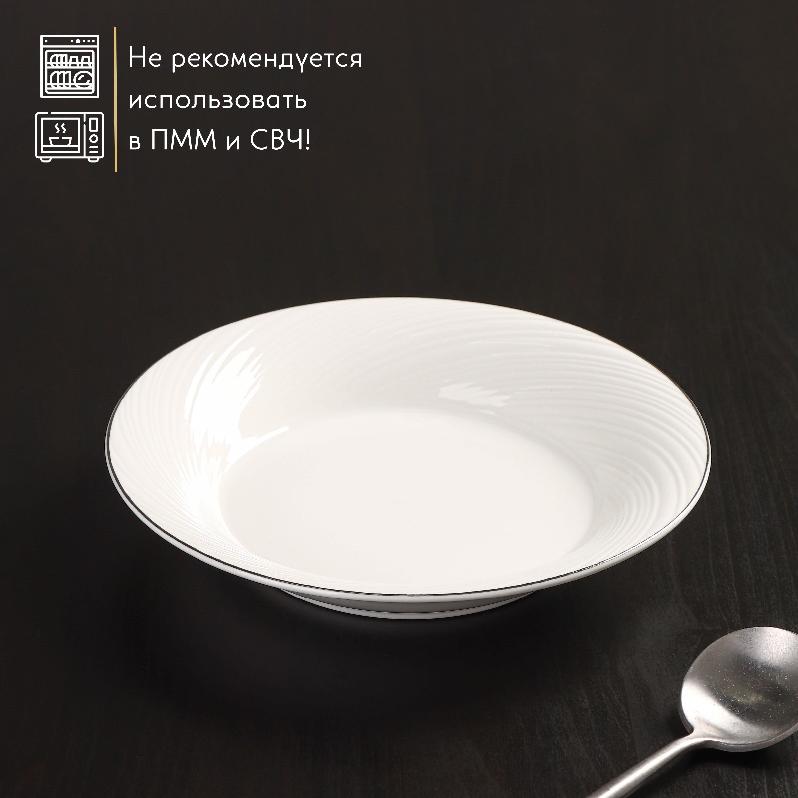Тарелка фарфоровая глубокая с утолщённым краем Magistro La Perle, 580 мл, D=22 см, цвет белый