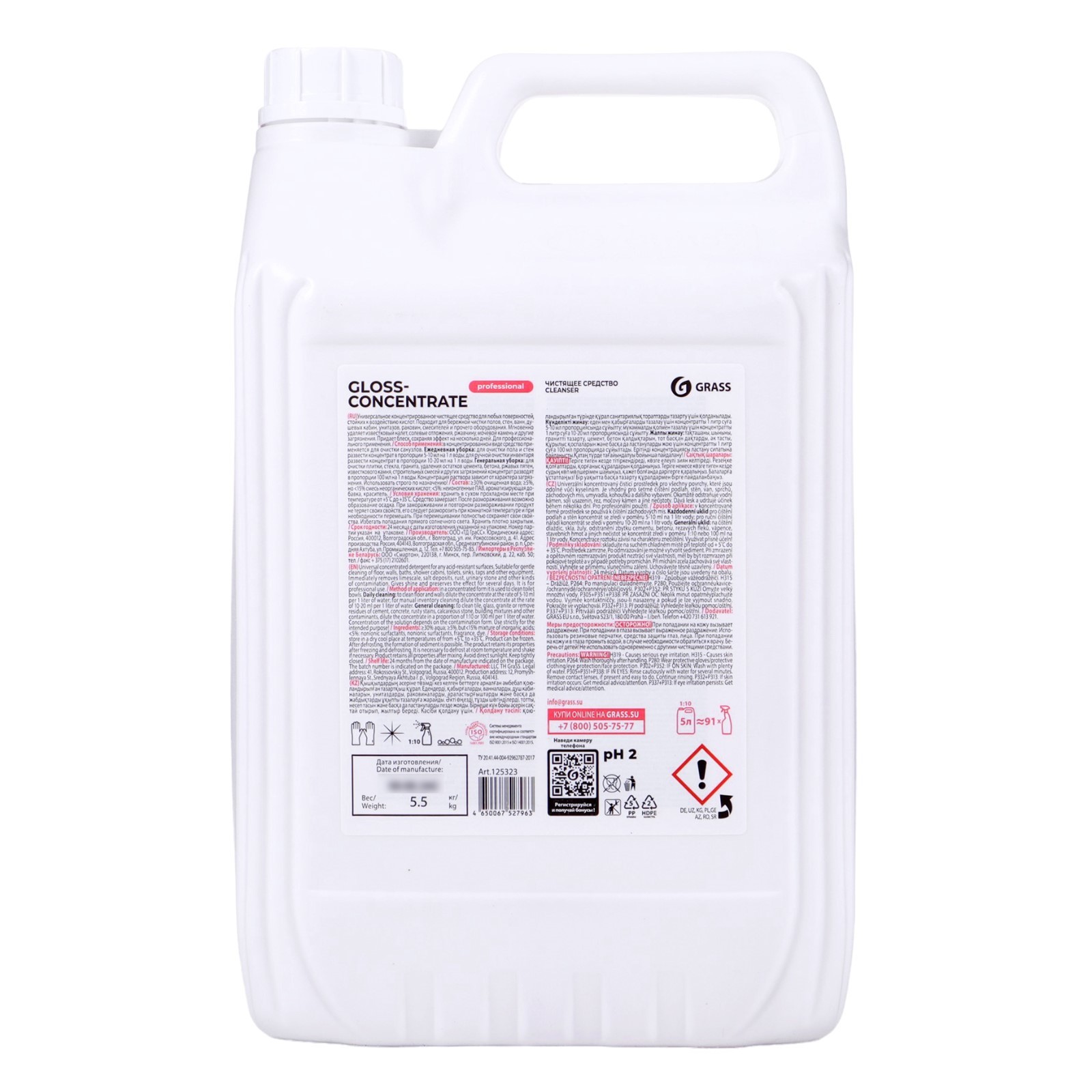 Концентрированное чистящее средство "gloss concentrate" 5,5 кг. Универсальное концентрированное чистящее средство для любых поверхностей, стойких к воздействию кислот. Подходит для бережной чистки полов, ванн, душевых кабин, унитазов, раковин, кранов и прочего оборудования. Мгновенно уда-ляет известковый налет, солевые отложения, ржавчину, мочевой камень и другие загрязнения. Придает блеск, сохраняя эффект на несколько дней. При правильном применении не повреждает хромированные, пластиковые поверхности, кислотостойкую плитку и эмаль. В концентрированном виде средство применяется для очистки унитазов. parts count: 0 Вес, г/Объём, мл: 5500 Форма выпуска: Жидкость Назначение: Универсальное : 0 Температурное ограничение: Нет Эффект: Очищение  развернуть описание ▼
